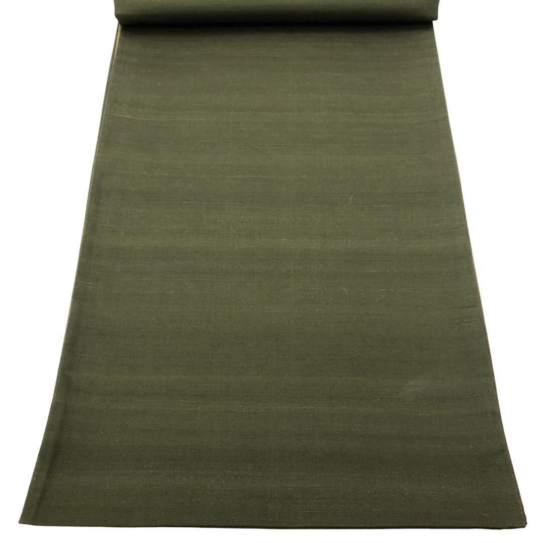 梅茶色の落ち着きのあるお色味の紬に織柄の抽象魚模様がデザインされた雰囲気の良い素敵なお品でございます。