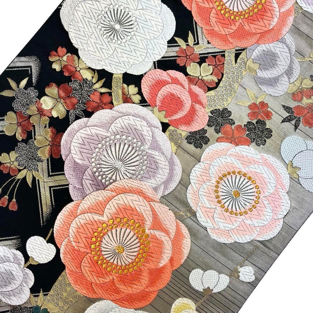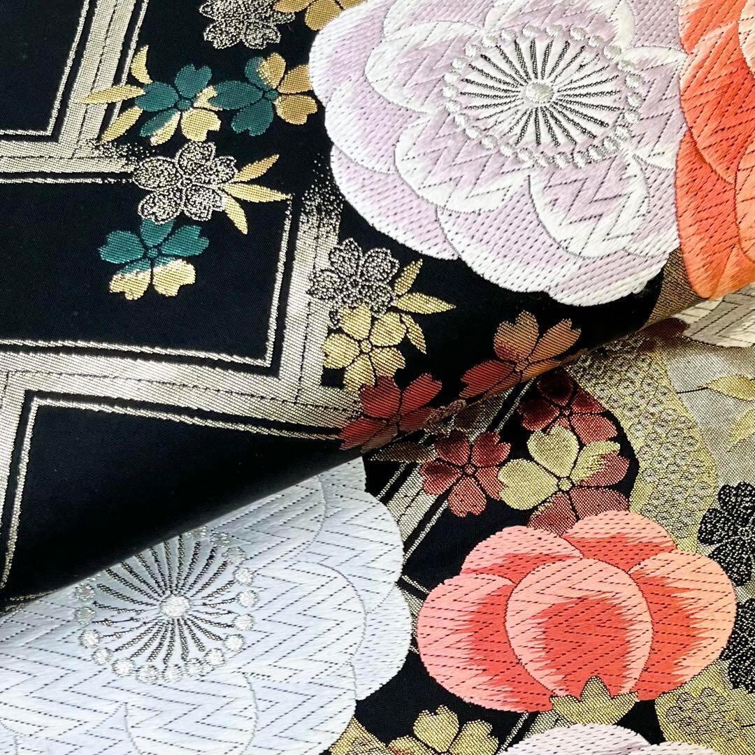 華やかな梅や桜の花柄模様がデザインされた素敵な柄裄のお品でございます。