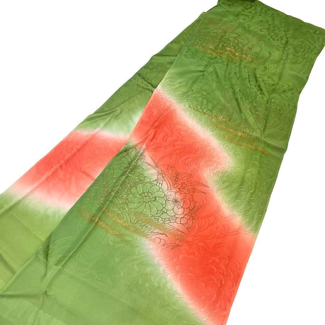常盤色に鮮やかな暈しの帯揚げ、同系色の金糸が使われた帯締めの素敵なセットのお品でございます。