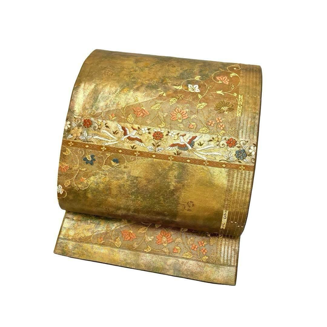 金色ベースのお色味に花唐草に鳳凰がデザインされた煌びやかな印象の素敵な柄裄のお品でございます。