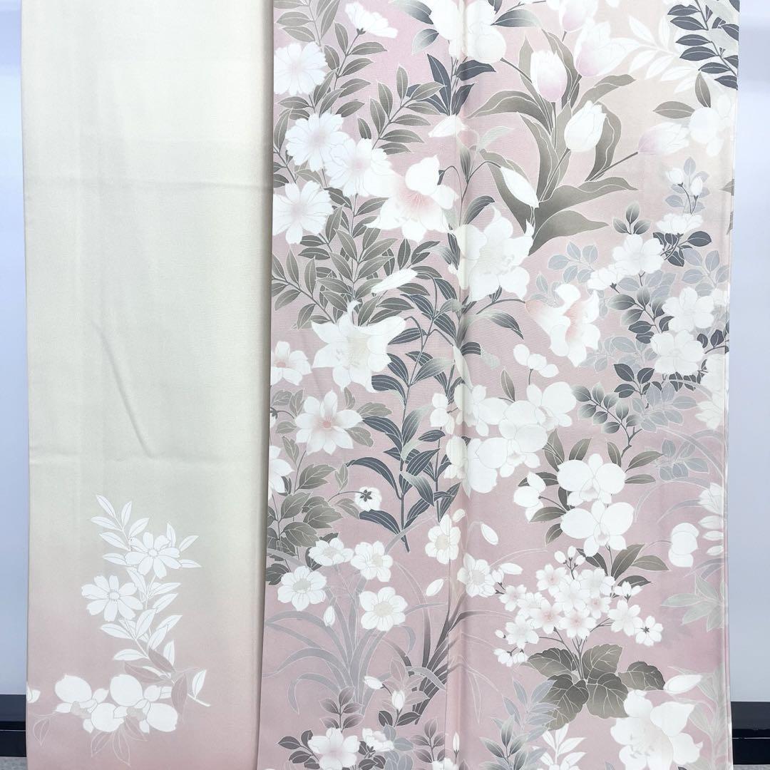 訪問着 友禅 上品で美しい花柄模様 暈し 薄桃色 トールサイズ K-4103