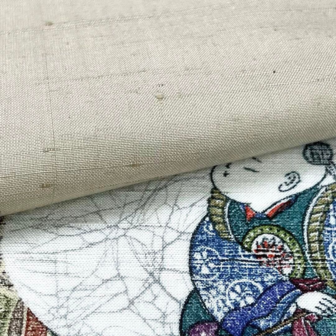 名古屋帯 作家物 手彫木版染 紬 童子 枯野色 O-4342