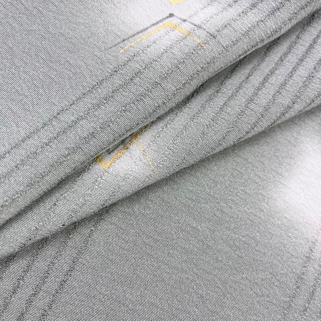 小紋 飛び柄 暈し 縦縞模様 金彩 薄利休鼠色 縮緬 ガード加工 K-4111