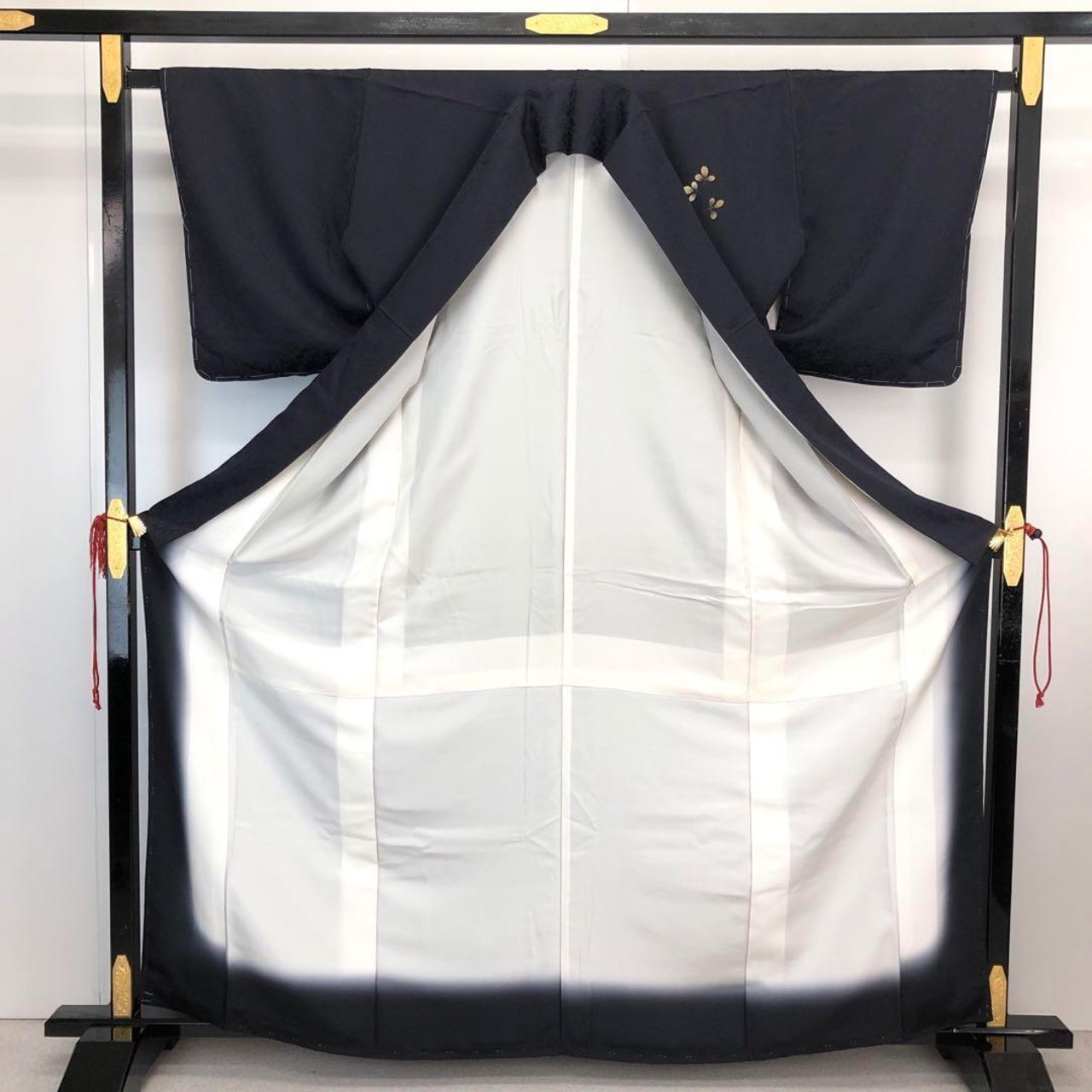 付下げ 上品な花模様 手描き 暈し 青褐色 金彩 しつけ糸 K-4116
