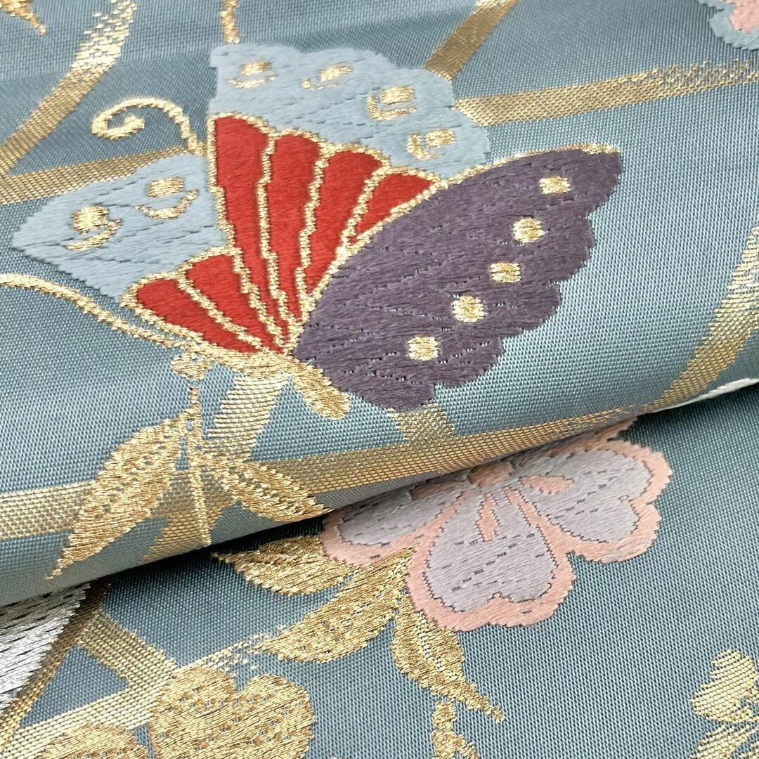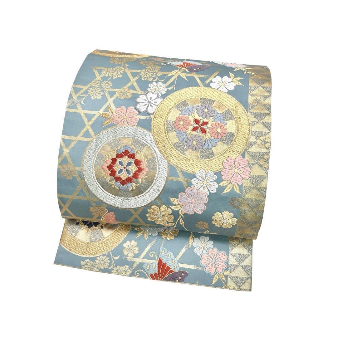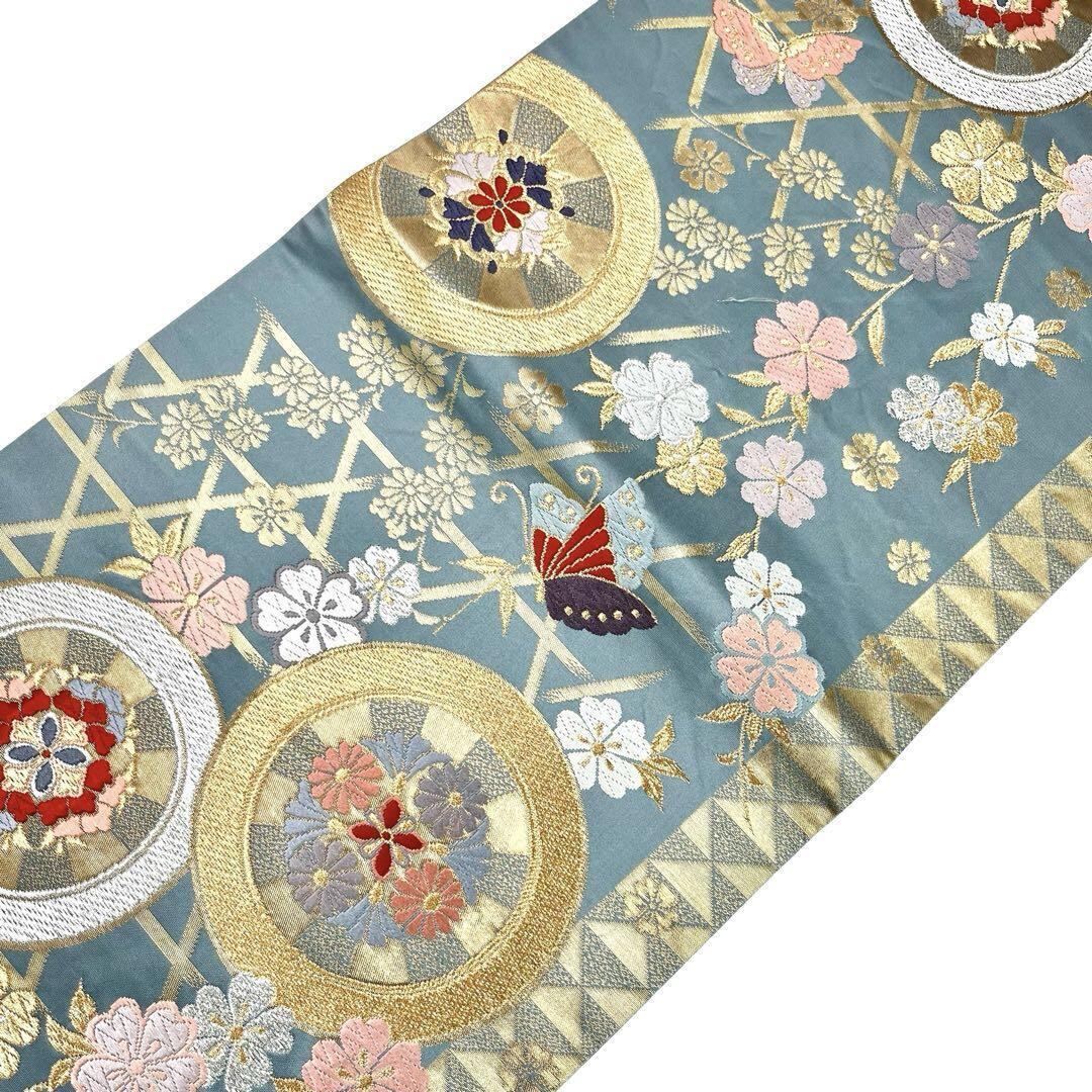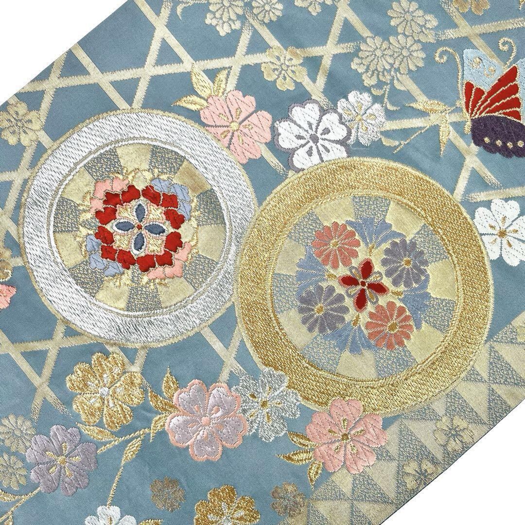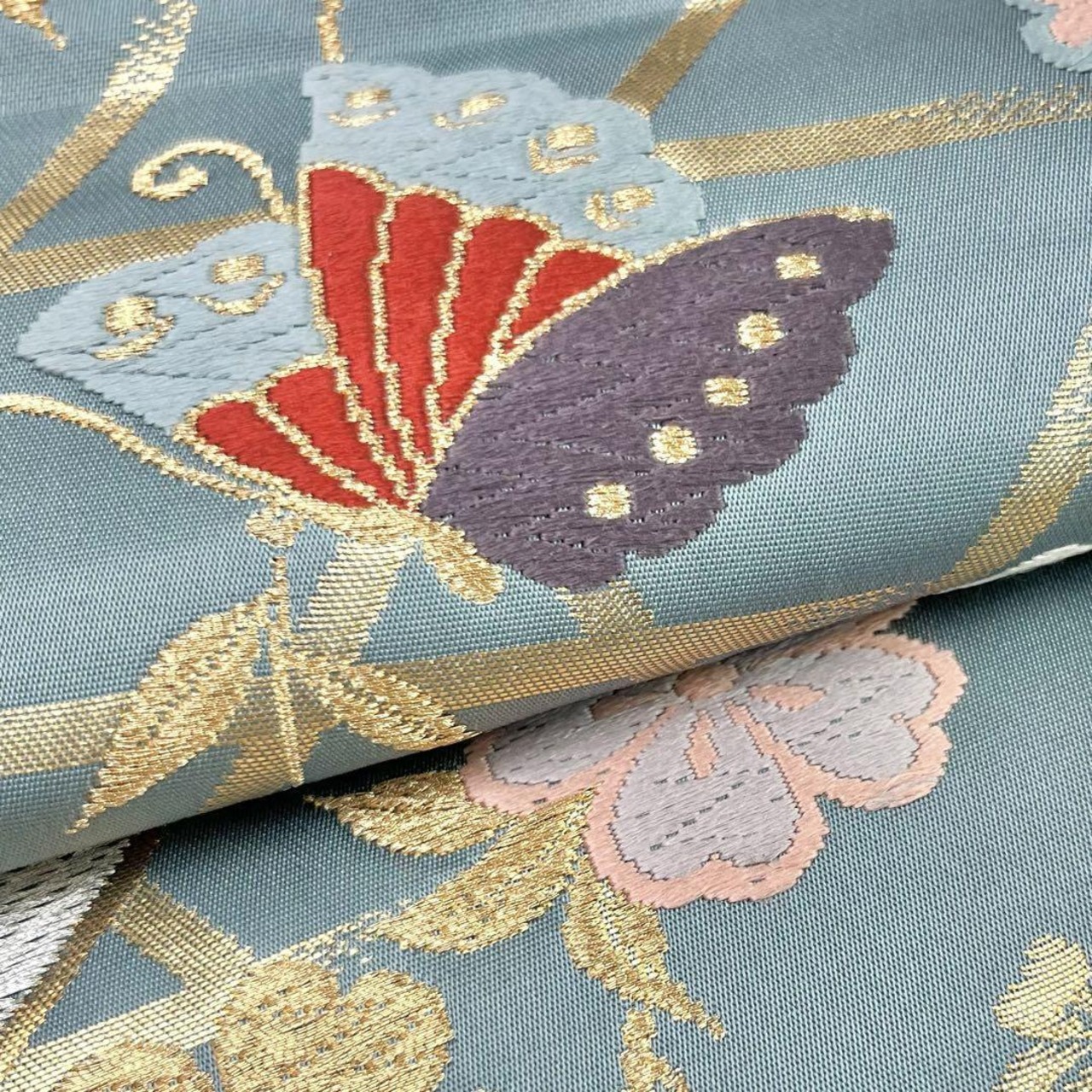 湊鼠色ベースの品のあるお色味、籠目、花柄模様、源氏香などの柄裄がデザインされた素敵なお品でございます。