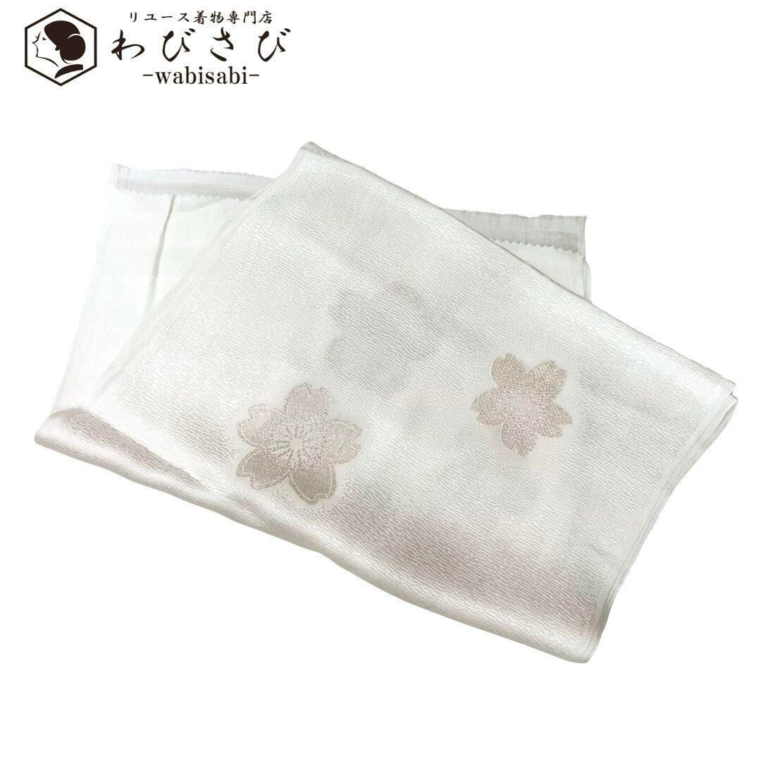 和装小物 帯揚げ 綸子 正絹 桜の花模様 金糸 真珠色 C-5261