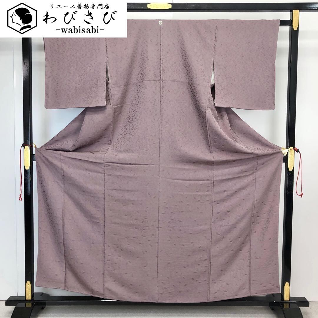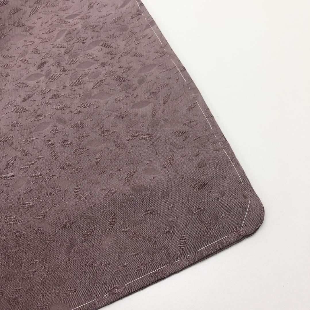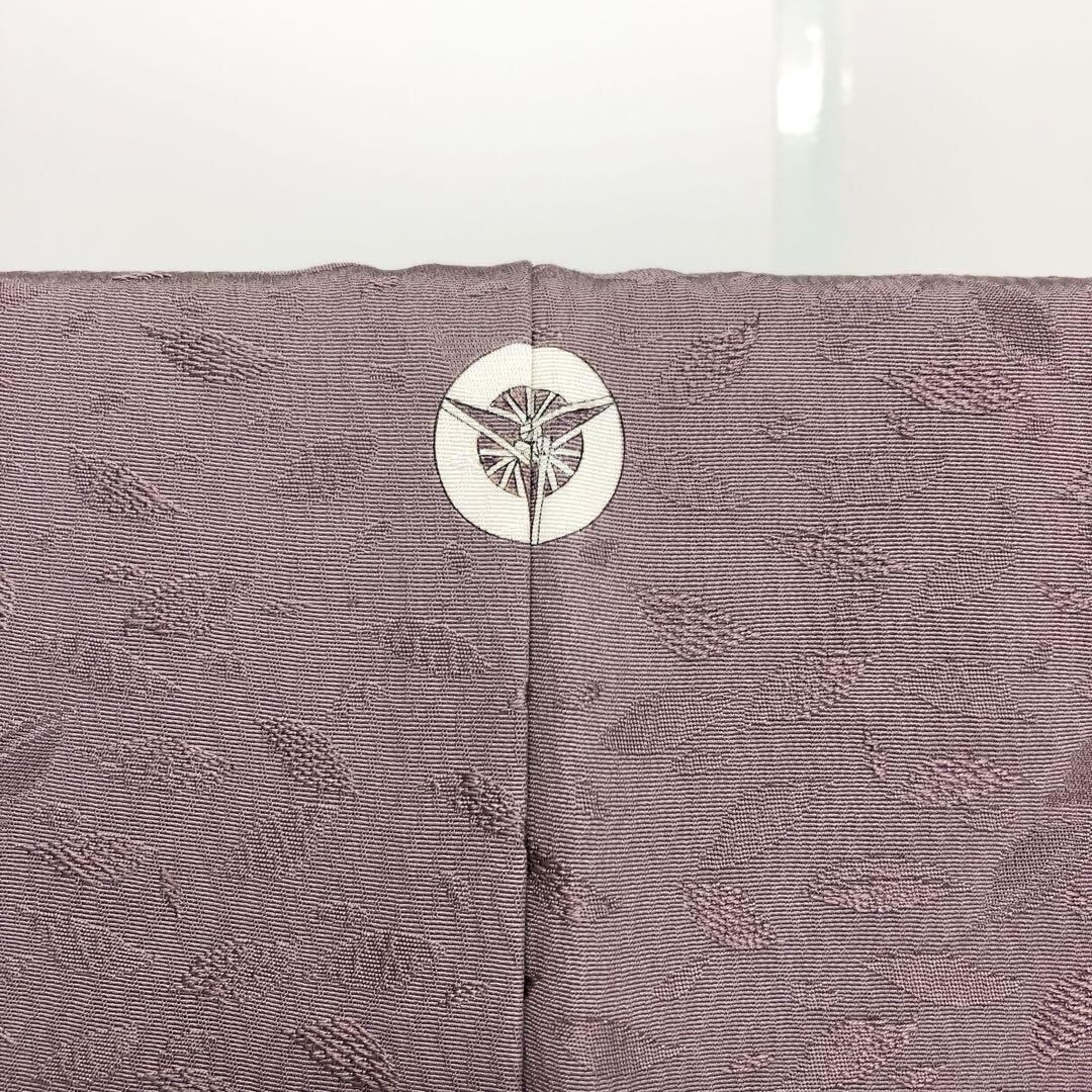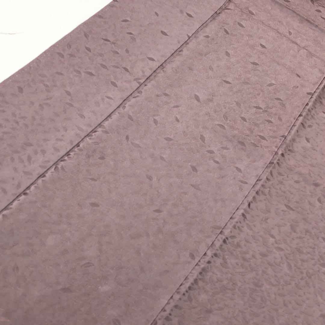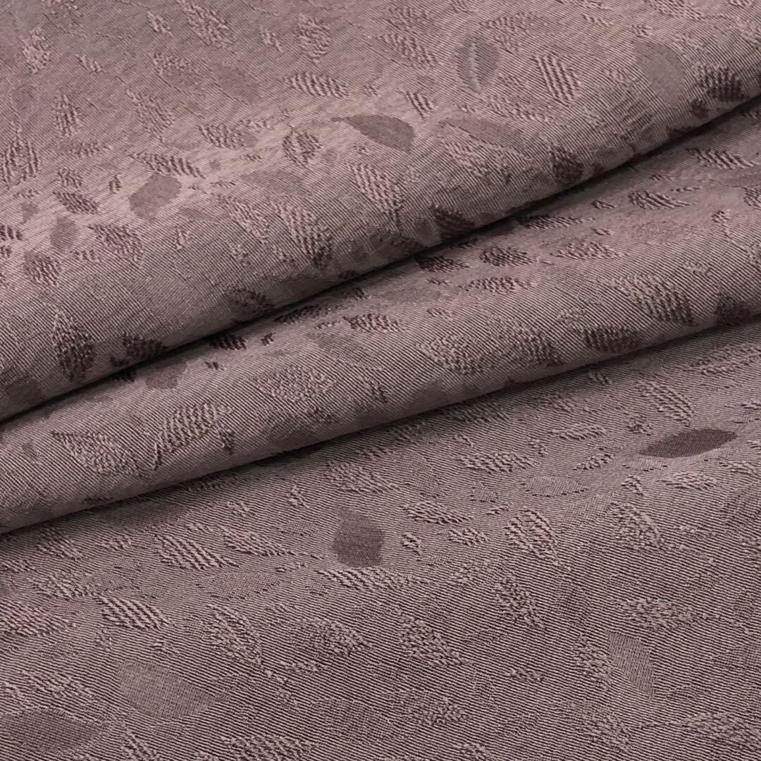 紅掛鼠色の落ち着いたお色味の縮緬に葉っぱ柄の地模様がデザインされた素敵なお品でございます。