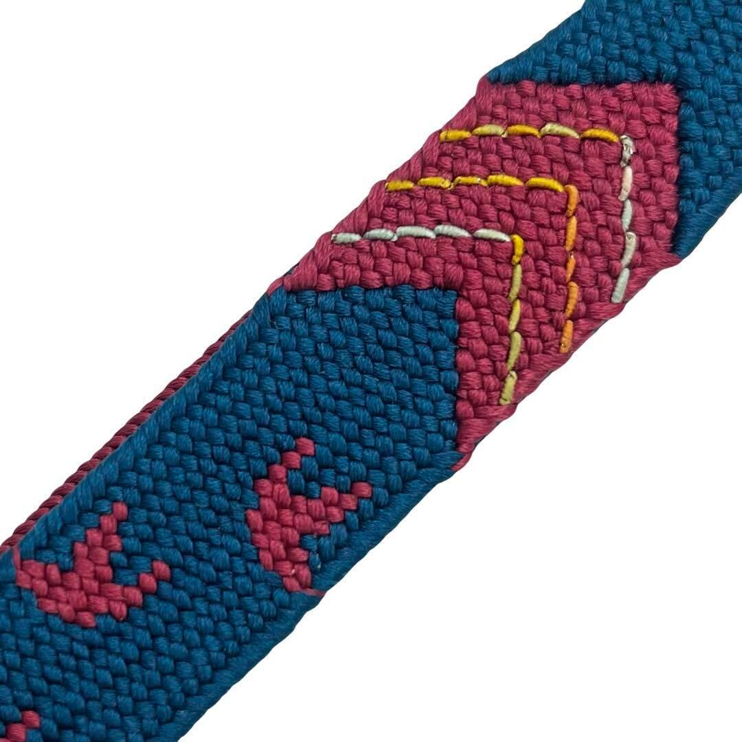 藍褐色と真紅色のお色味に鳥模様がデザインされた素敵なお品でございます。