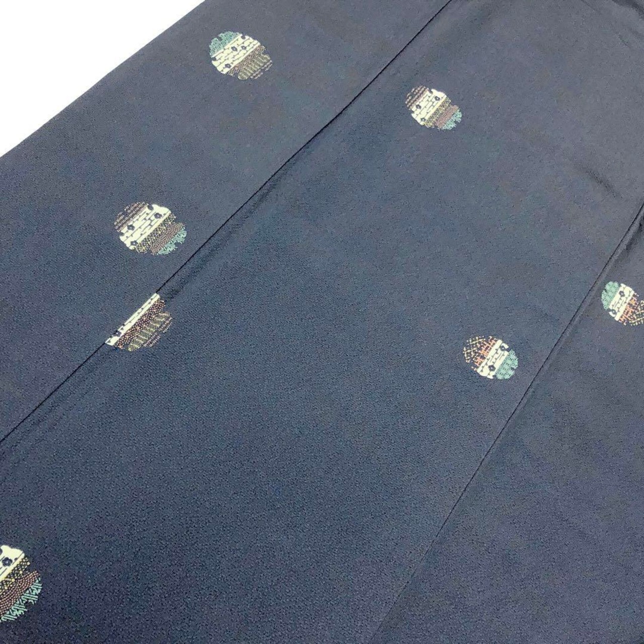 小紋 飛び柄 雪輪に寄せ柄模様 紺鳶色 縮緬 トールサイズ K-4151
