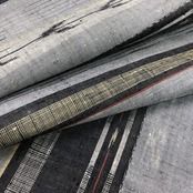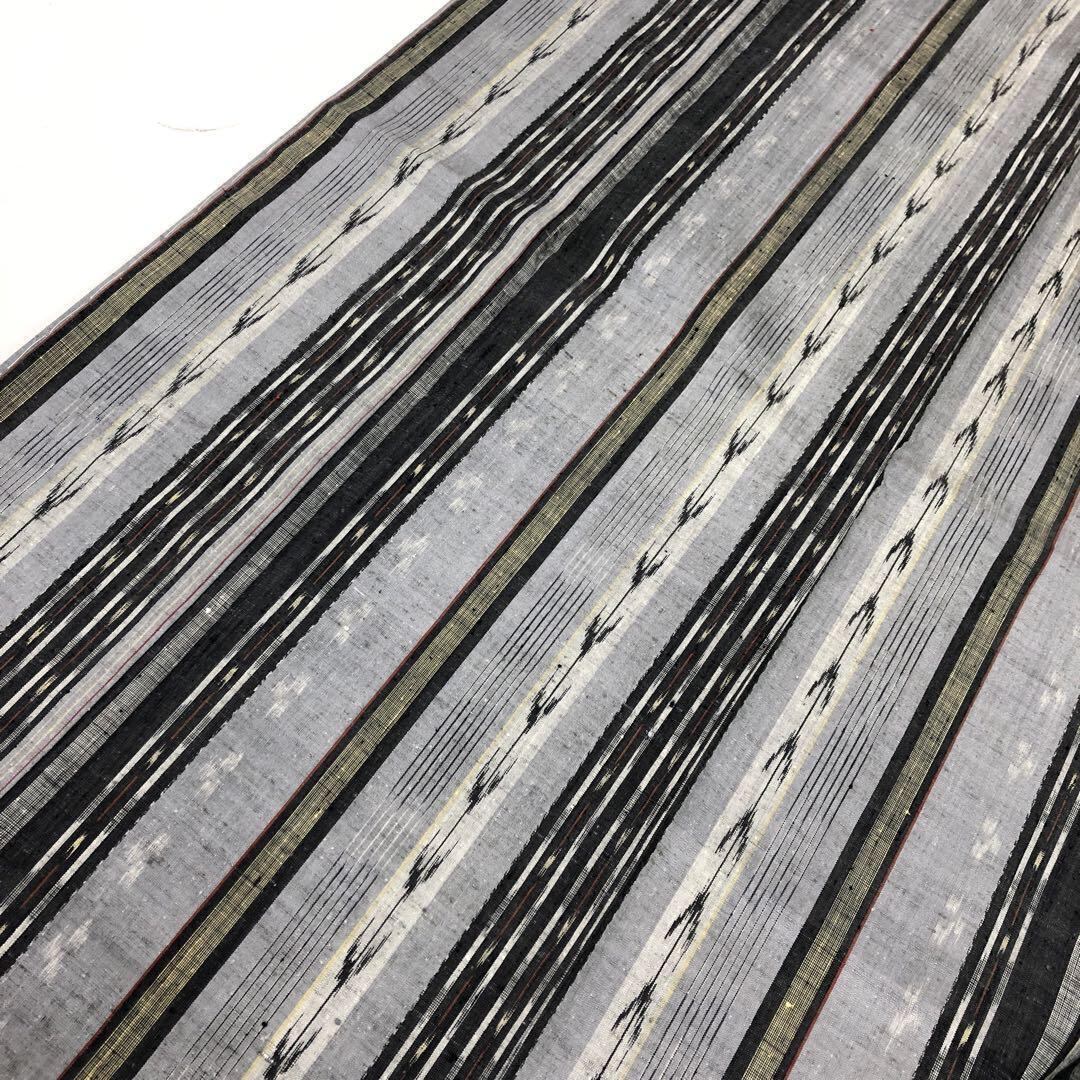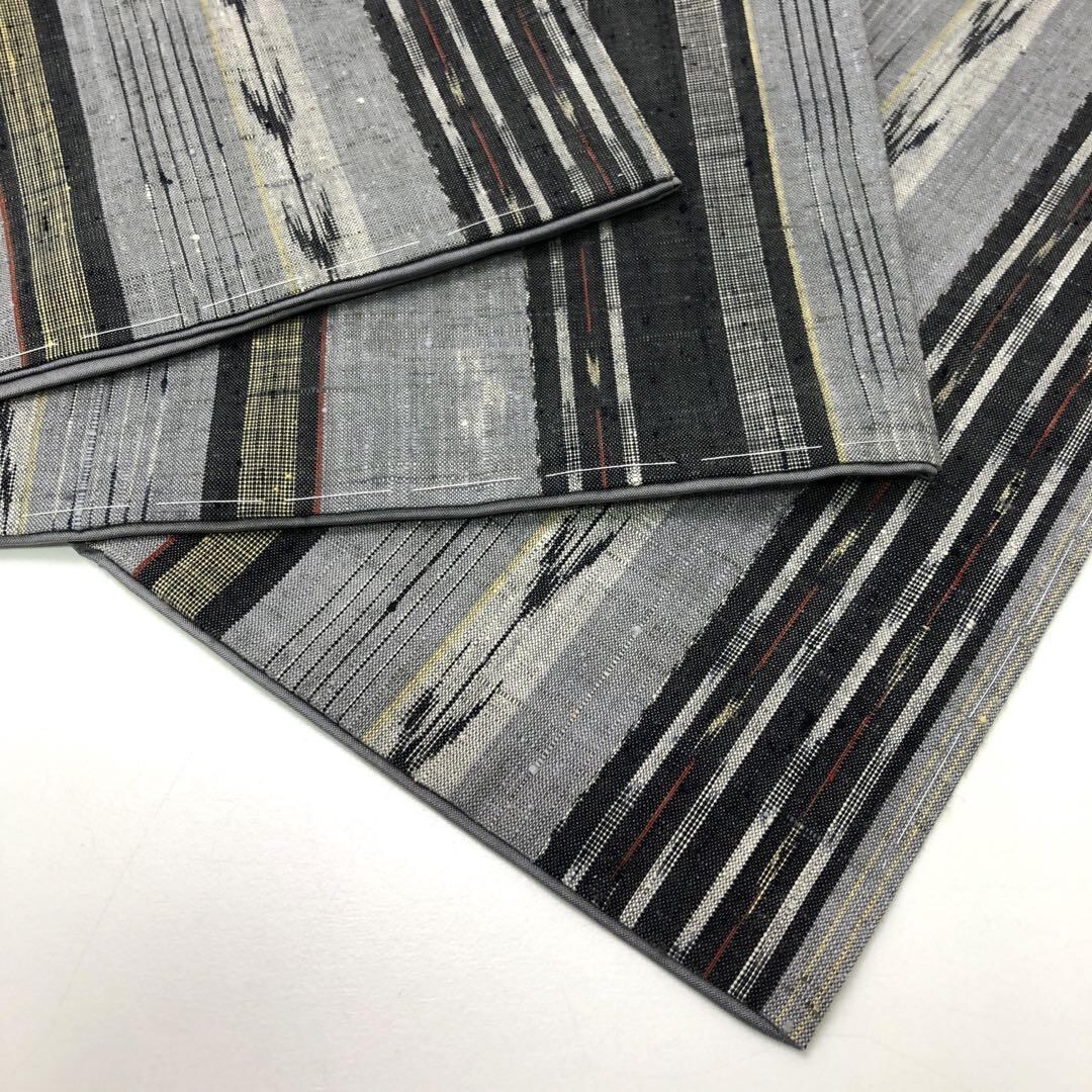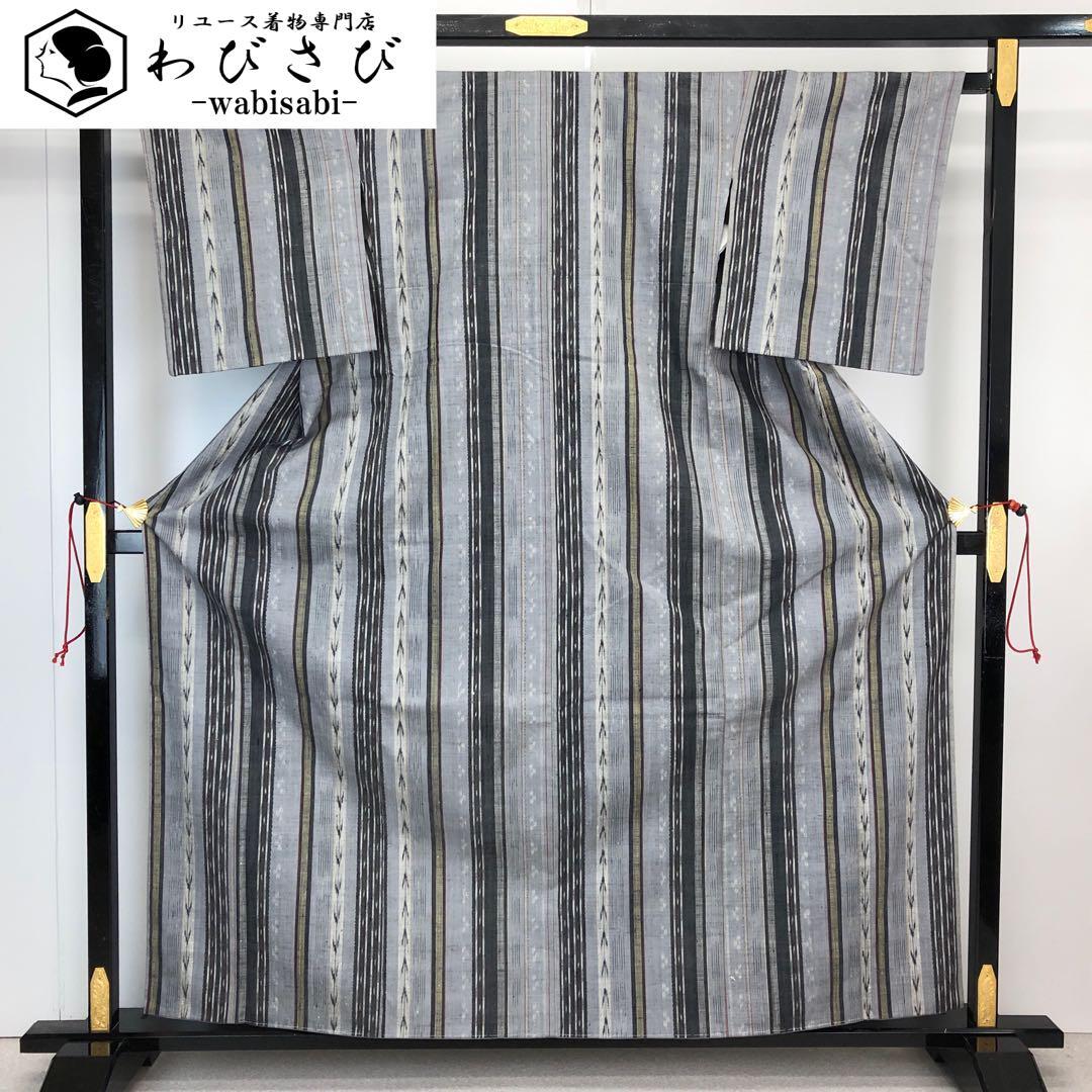 灰色のお色味に縦縞絣模様がデザインされた雰囲気の良い素敵な柄裄のお品でございます。