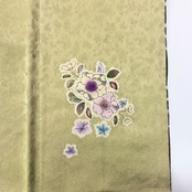 枯草色の落ち着きのある黄色味のお色に銀通し、金彩が施された美しい辻が花絞りの柄裄がデザインされた素敵な柄裄のお品でございます。