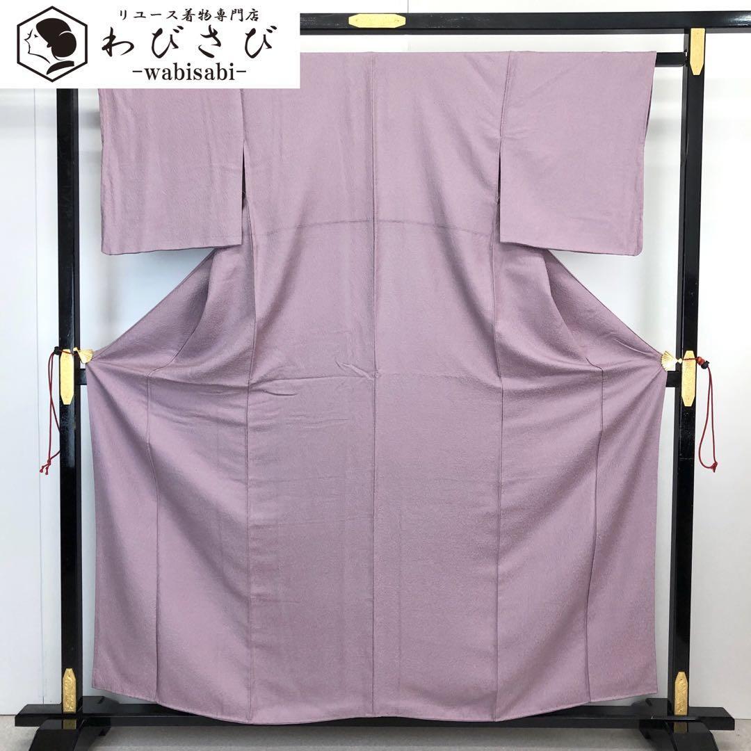 色無地 蒲萄色 地模様 縮緬 K-4155
