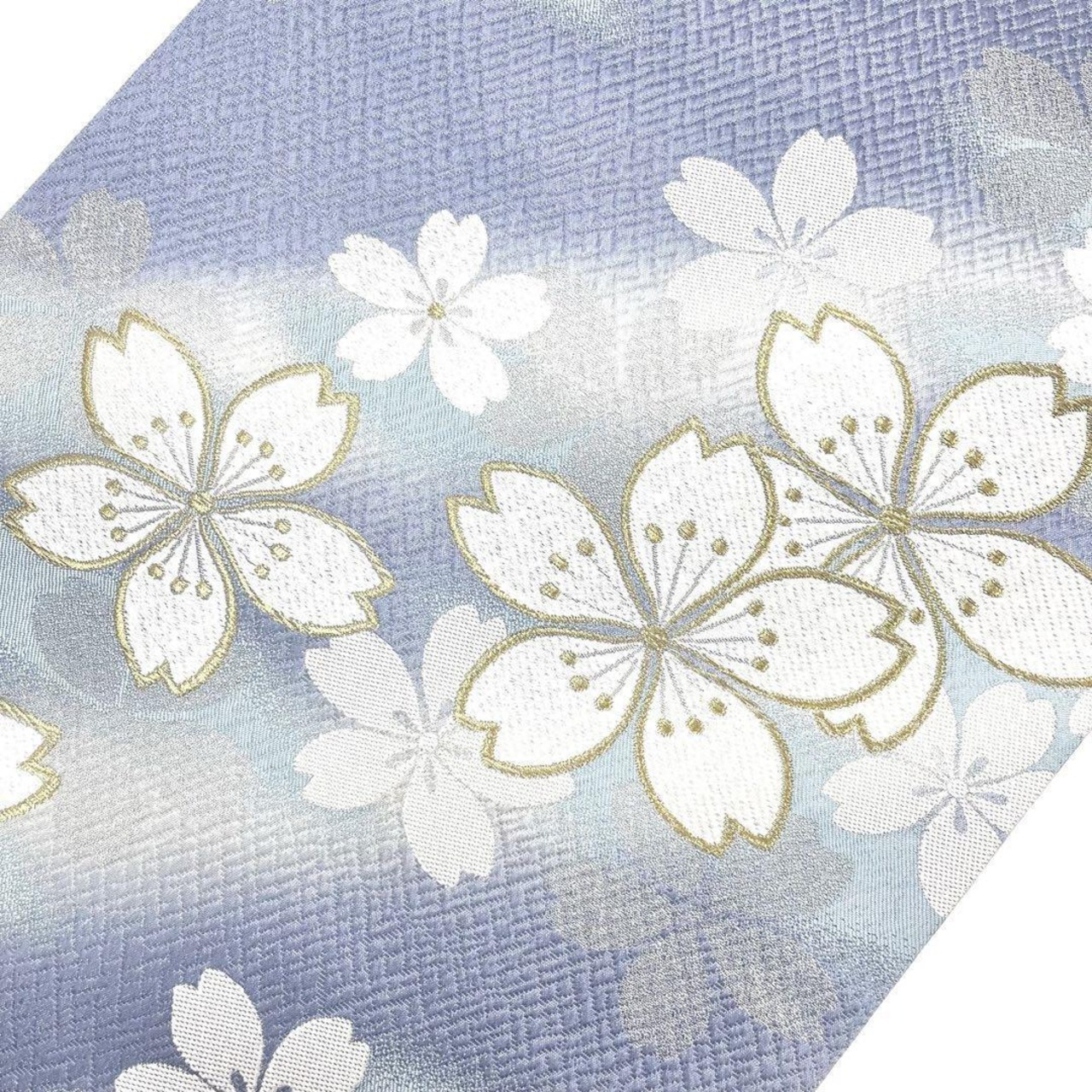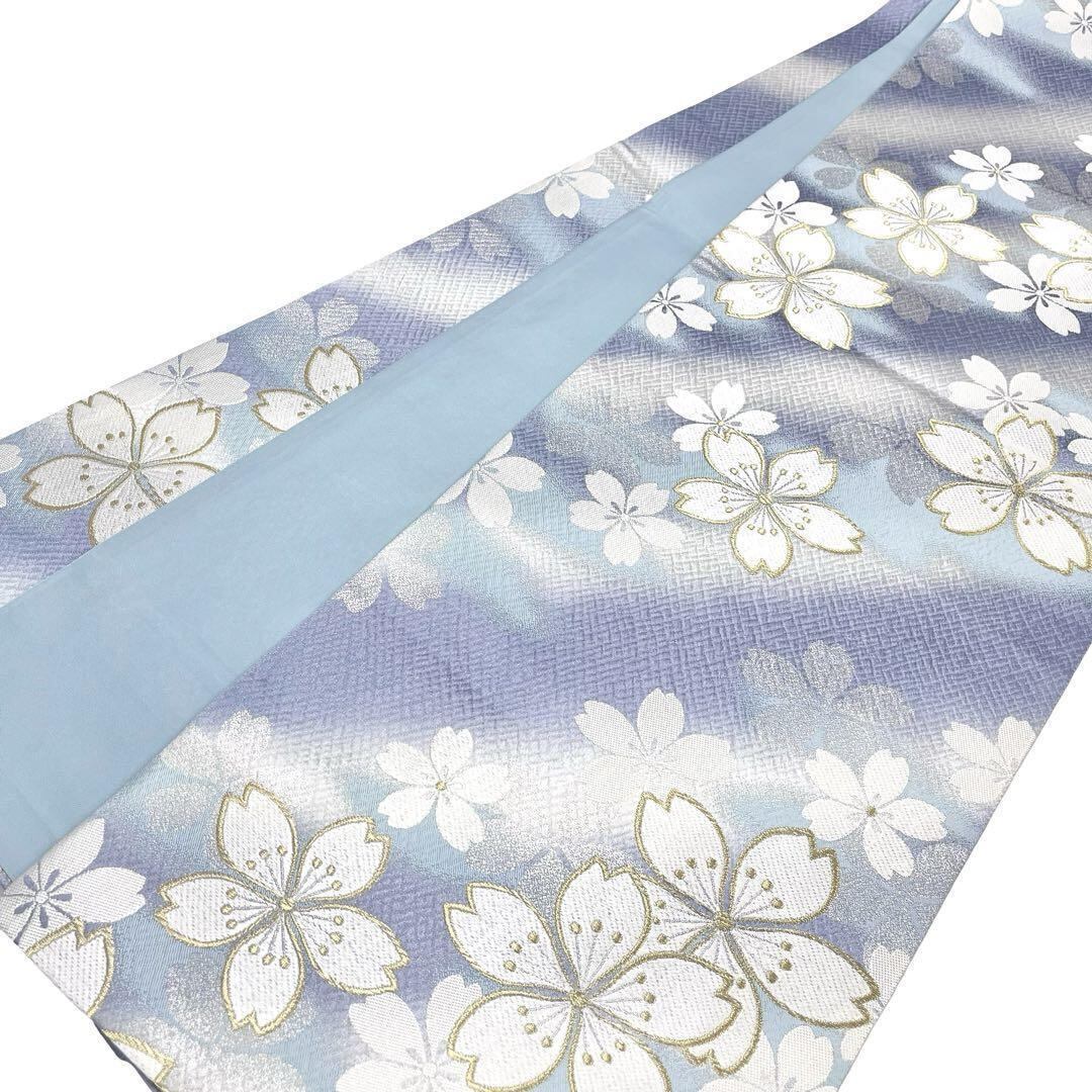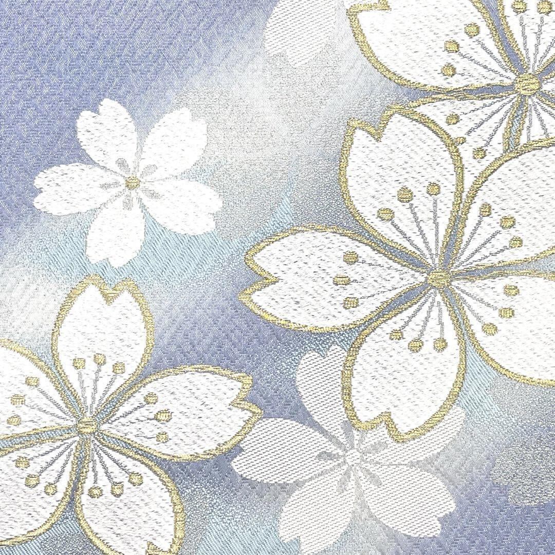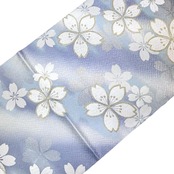 優彩花と題された銀通し、美しいブルー系のグラデーションに桜の花模様がデザインされた上品な色彩の素敵な柄裄のお品でございます。