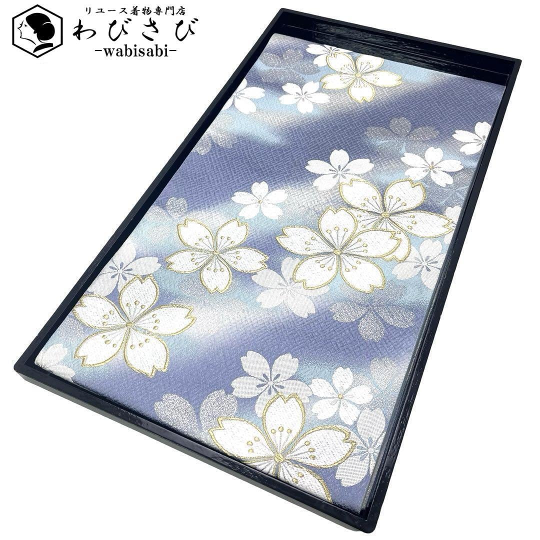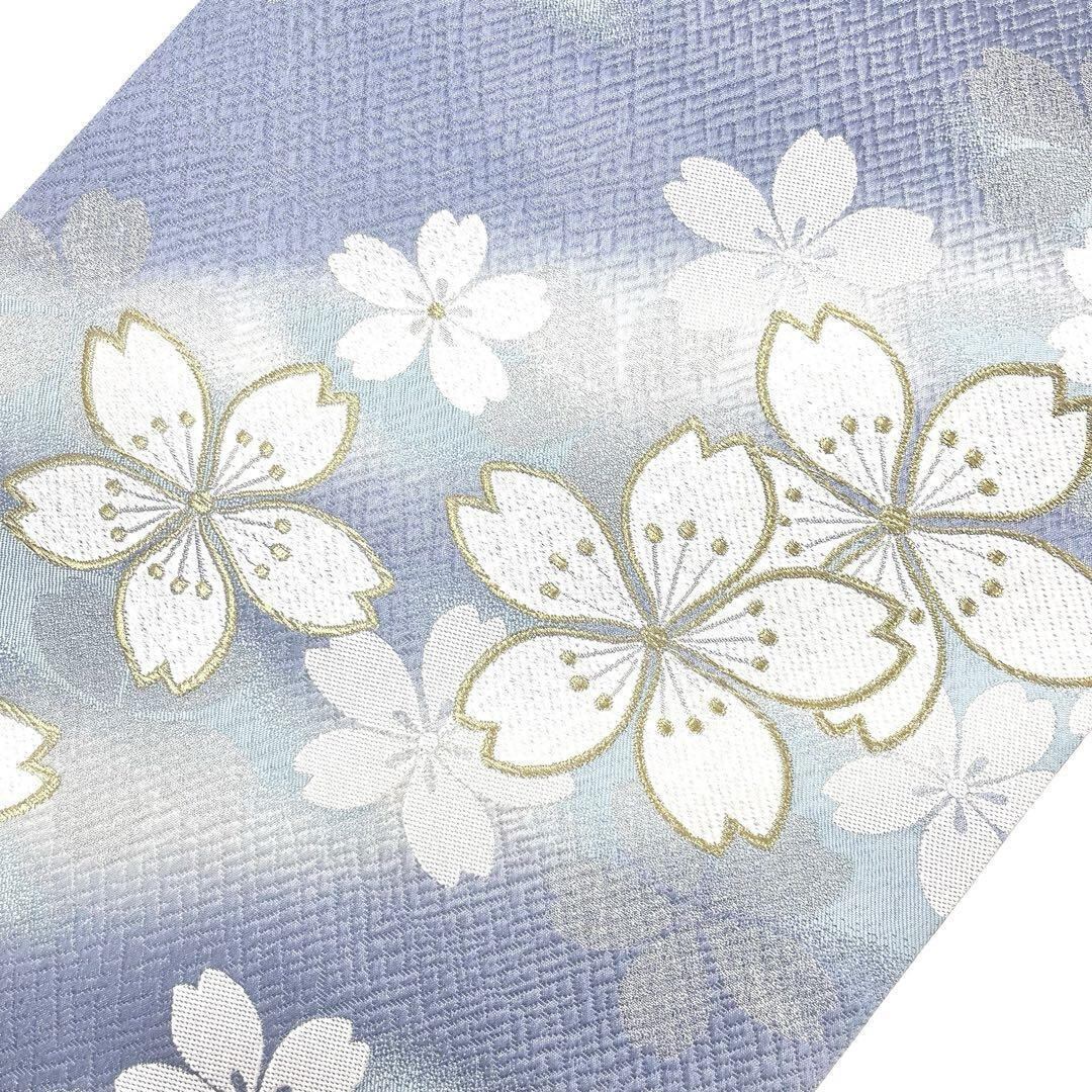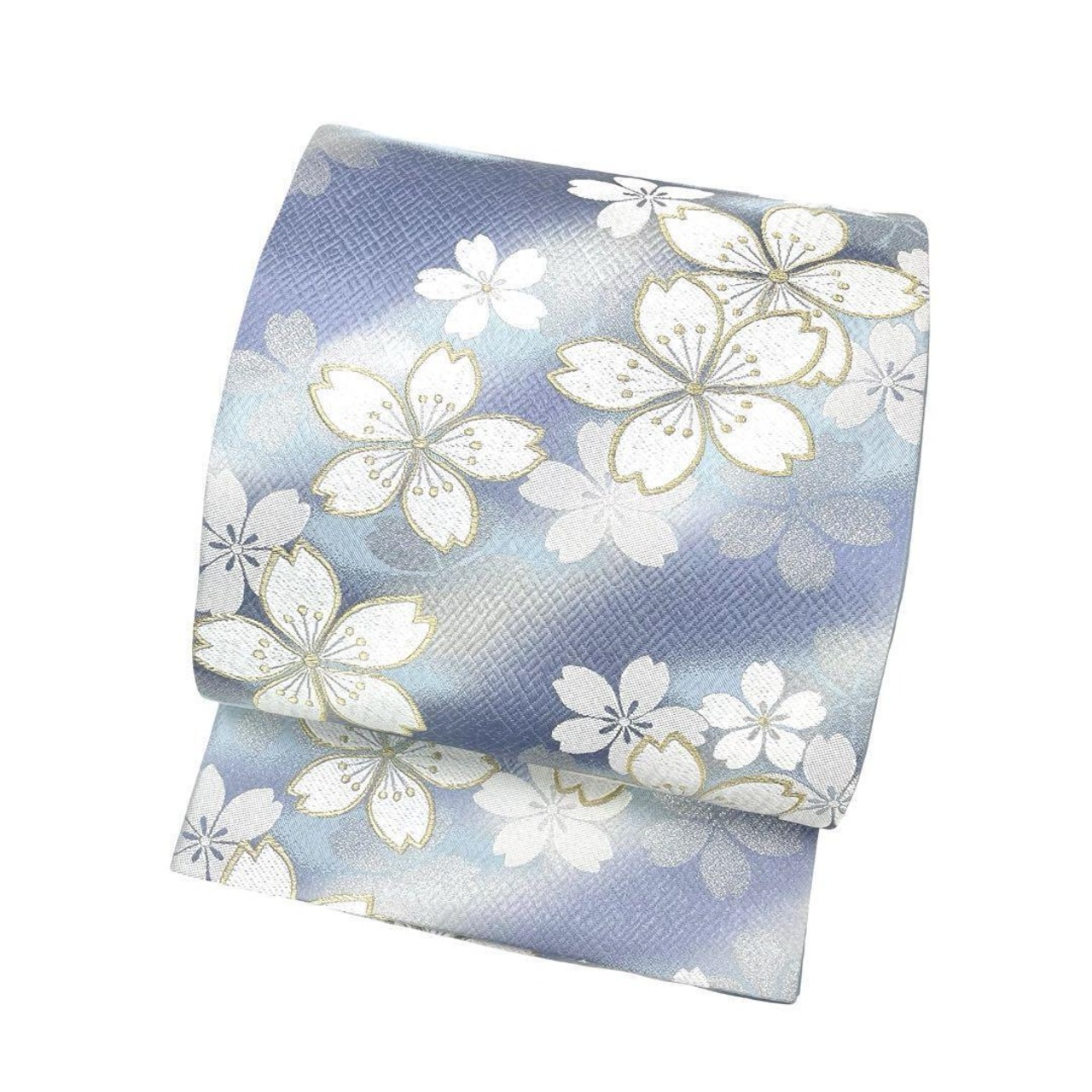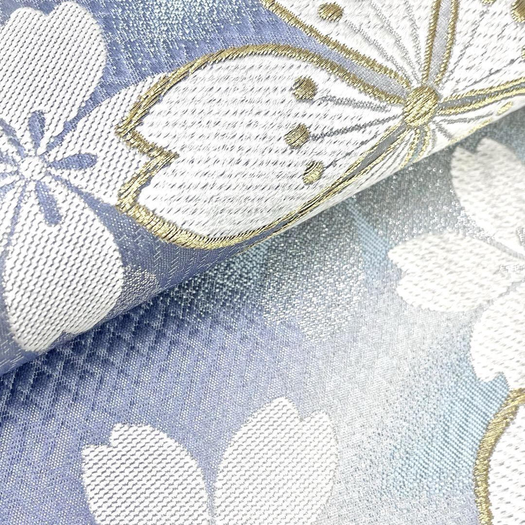 優彩花と題された銀通し、美しいブルー系のグラデーションに桜の花模様がデザインされた上品な色彩の素敵な柄裄のお品でございます。