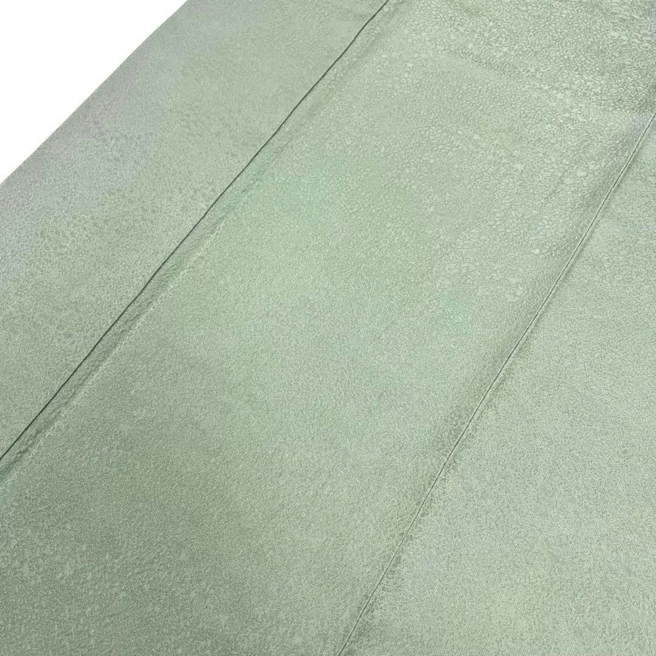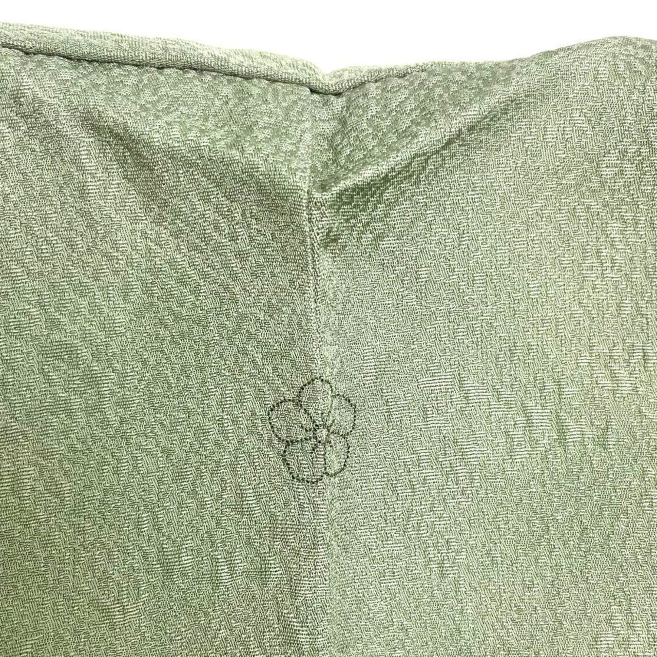 柳茶色の品のある緑味の縮緬の素敵なお品でございます。