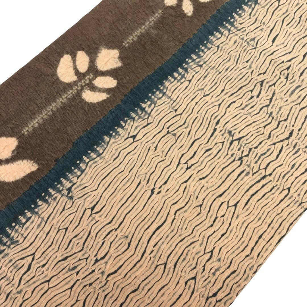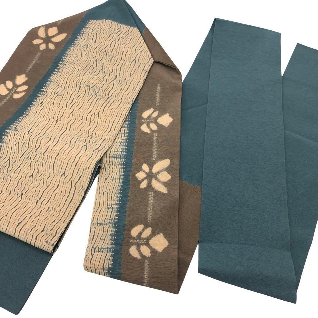 名古屋帯 絞り柄 花模様 錆納戸色 縮緬 O-4376