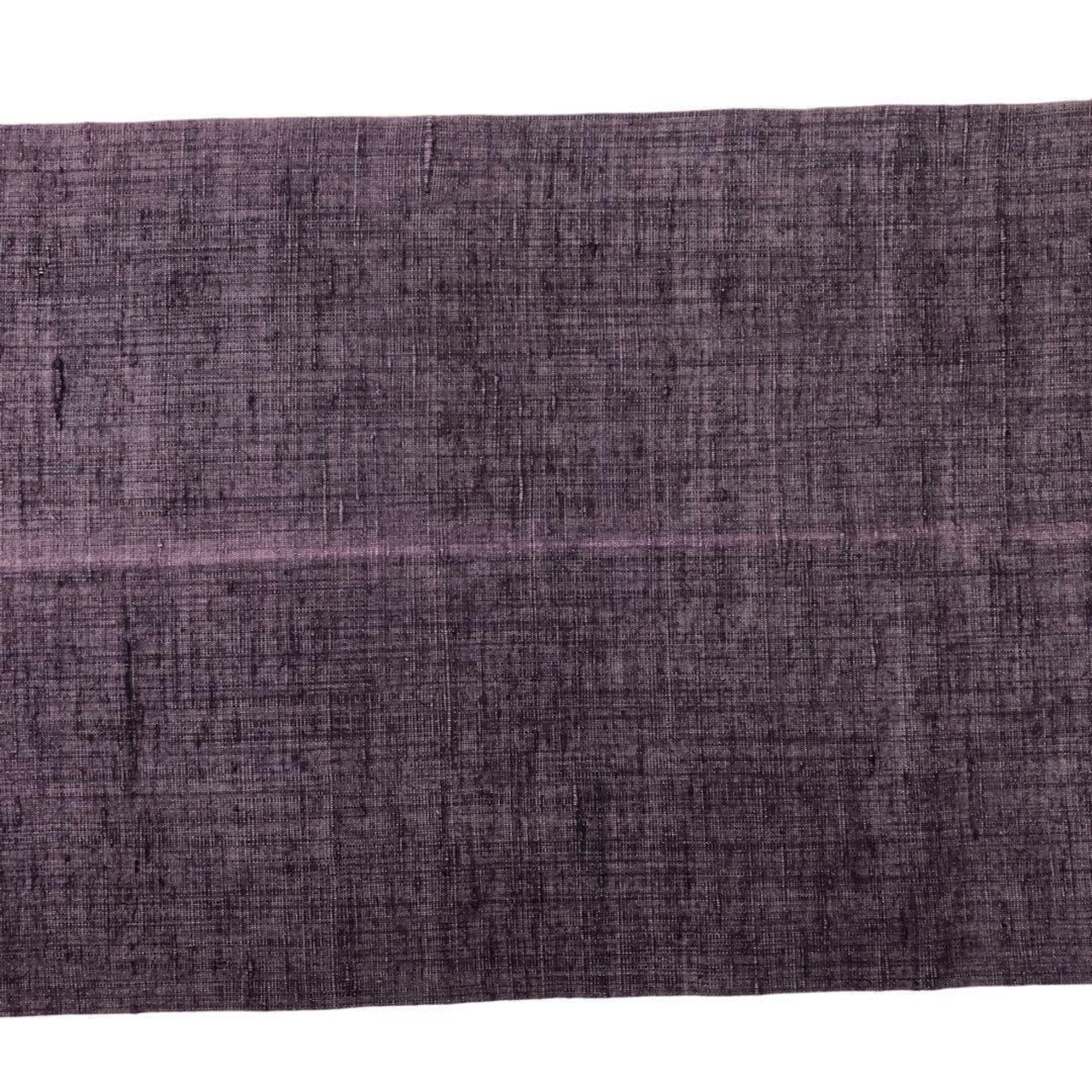 紫鳥色の落ち着きのある紫色の紬地に刺し子の麻の葉、七宝模様がデザインされた雰囲気の良い素敵なお品でございます。