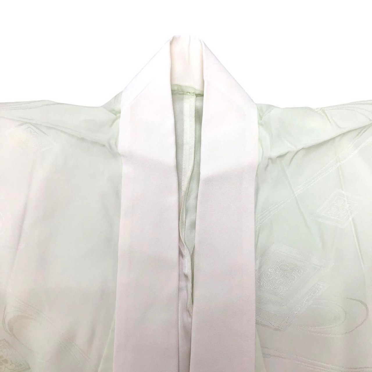 長襦袢 単衣 流水 花菱 白緑色 丸洗い可 半衿付 しつけ糸 J-234