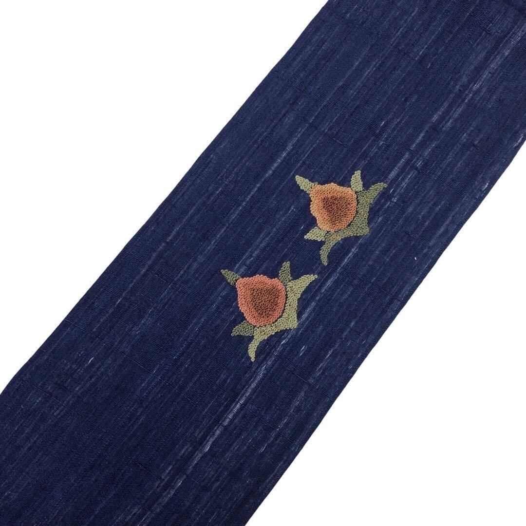 名古屋帯 紬 相良刺繍 汕頭刺繍 花柄 松 濃ニ藍色 O-4388 着物 きもの kimono 和服 和装 中古 リサイクル着物 【送料無料】