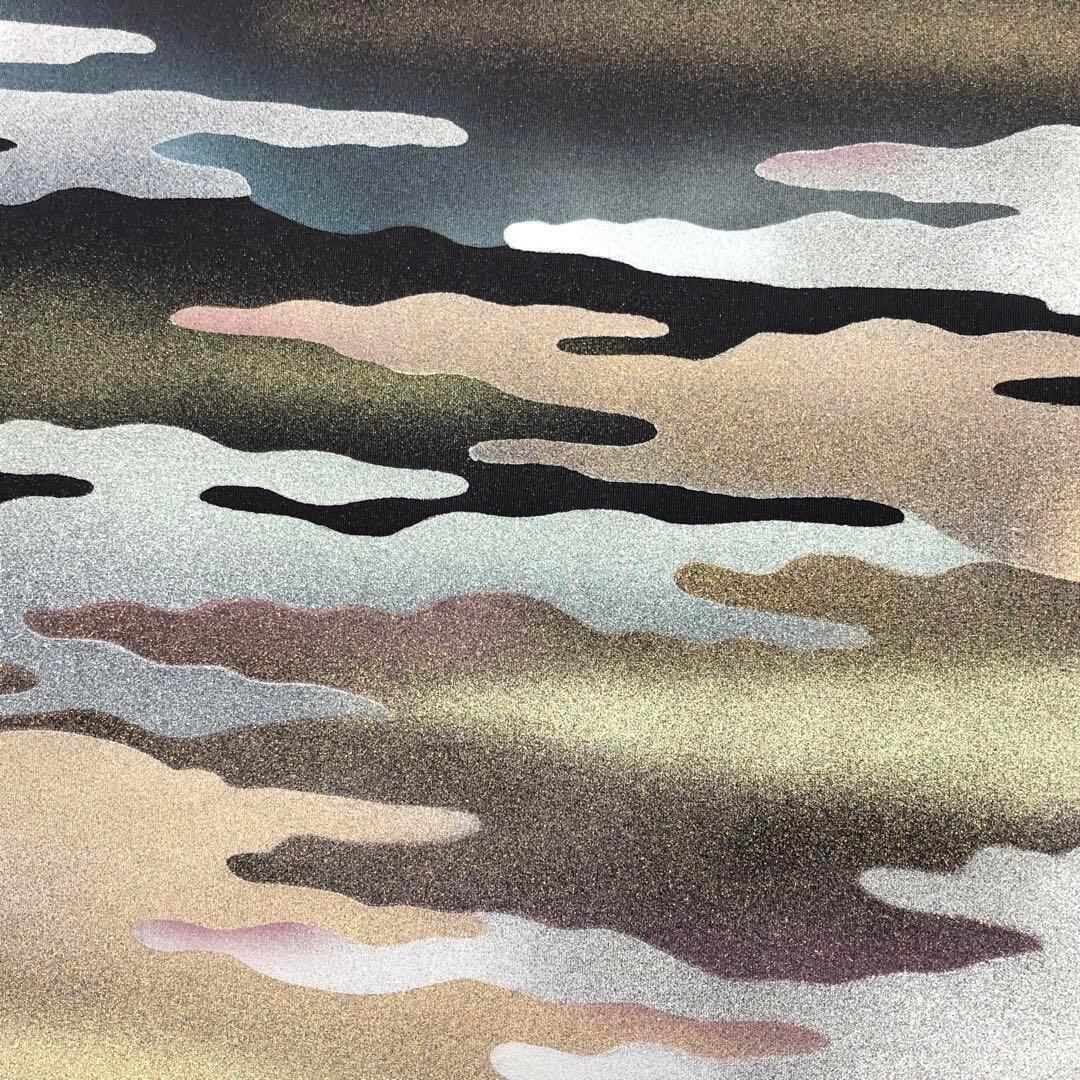 深滅紫色のお色味、美しい霞模様がデザインされた品のある素敵な柄行のお品でございます。