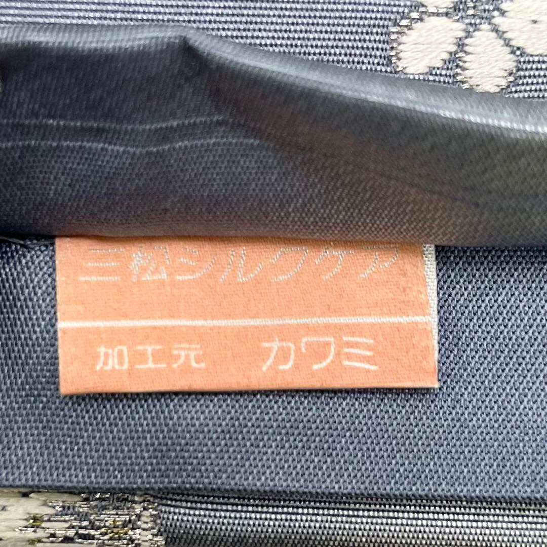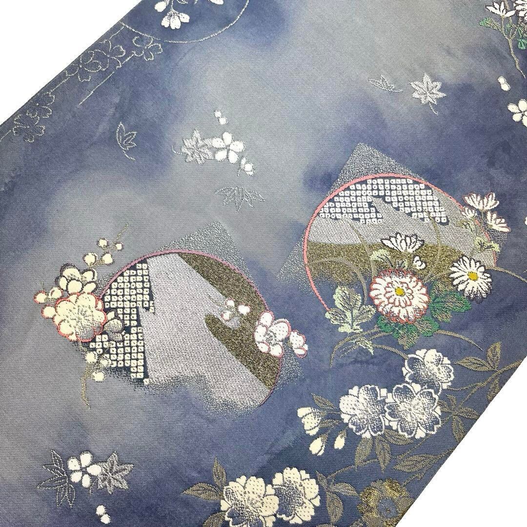 袋帯 丸に花模様 暈し 金銀糸 青袋鼠色 ガード加工 O-4421