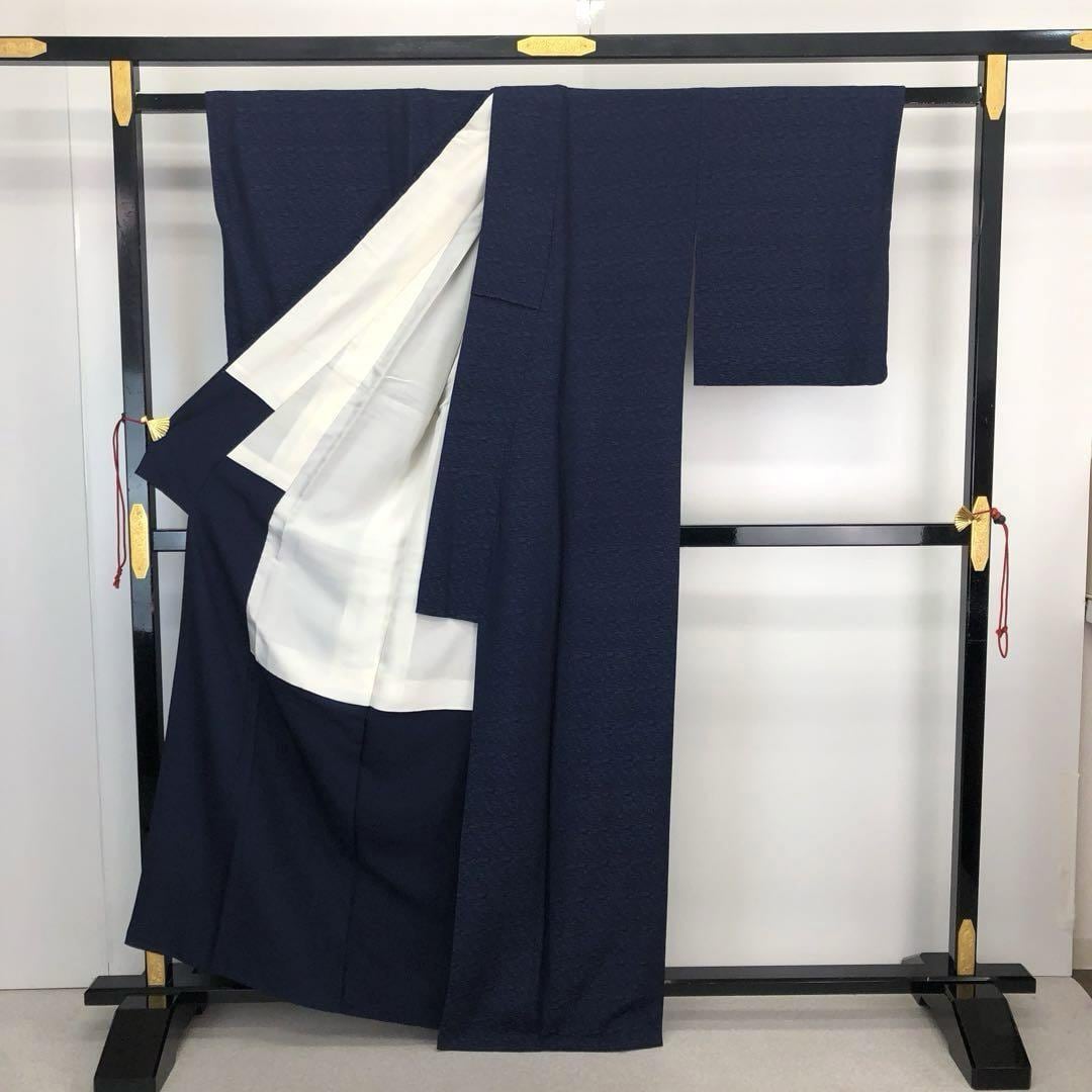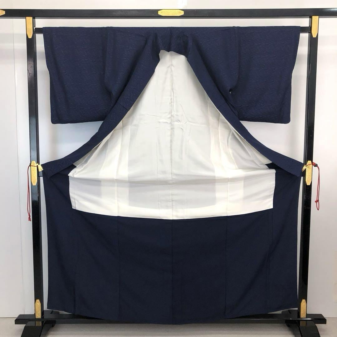 色無地 藍染 美しい藍色 流水模様 K-4177 着物 きもの kimono 和服 和装 中古 リサイクル着物 【送料無料】