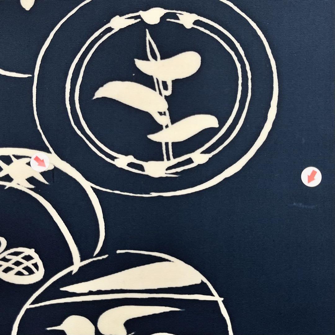 紺鉄色の落ち着きあるお色味の塩瀬に燕、蝶々、花模様がデザインされた雰囲気の良い素敵なお品でございます。