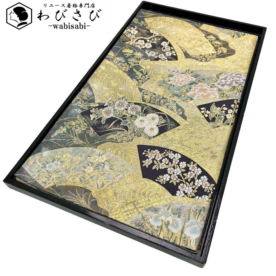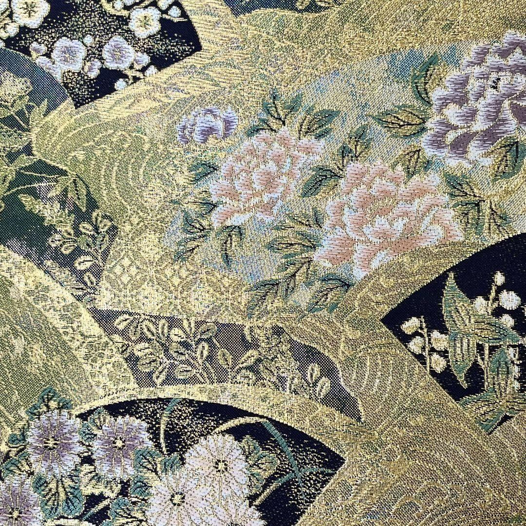 金色ベースの煌びやかなお色味、地紙に四季の花模様がデザインされた美しい素敵なお品でございます。