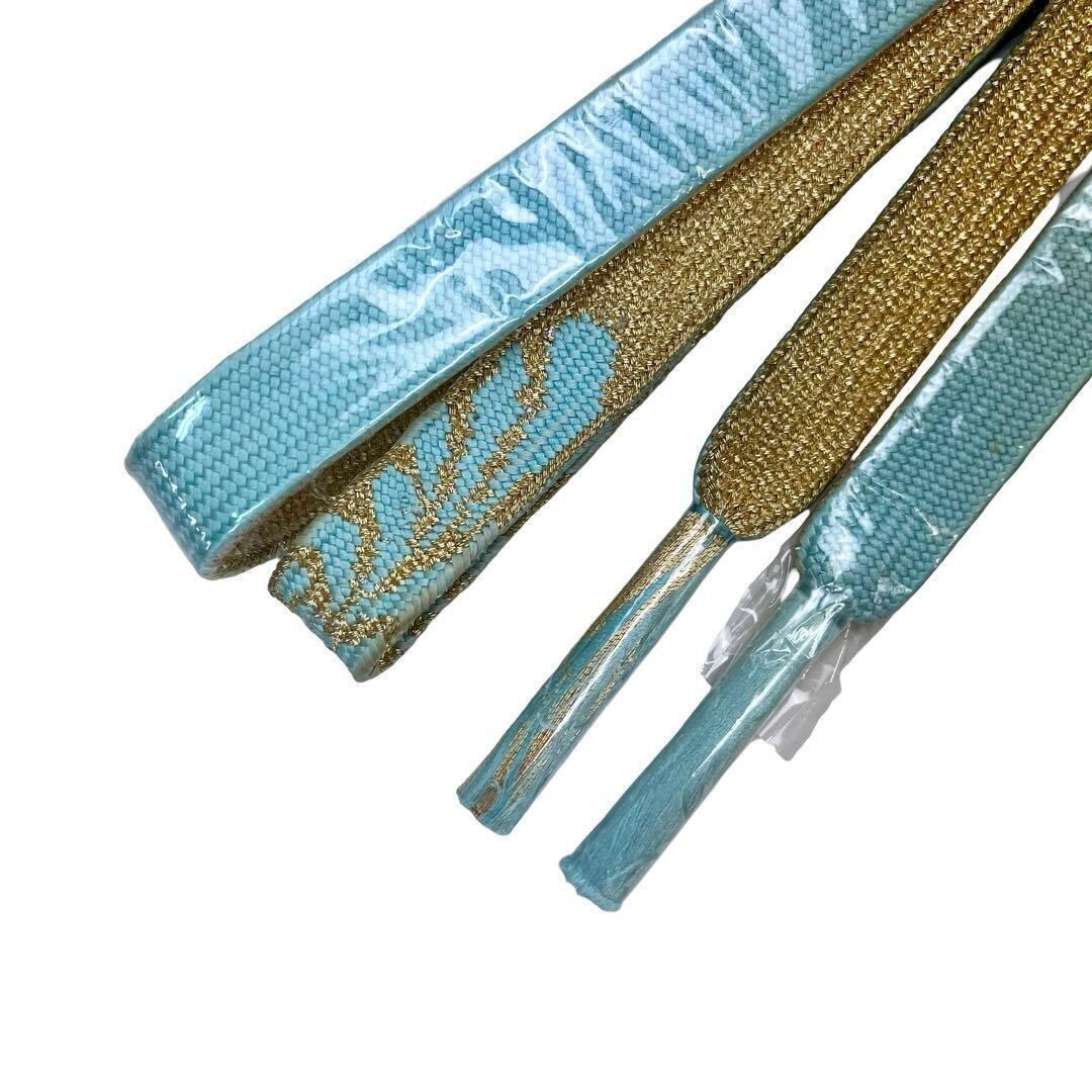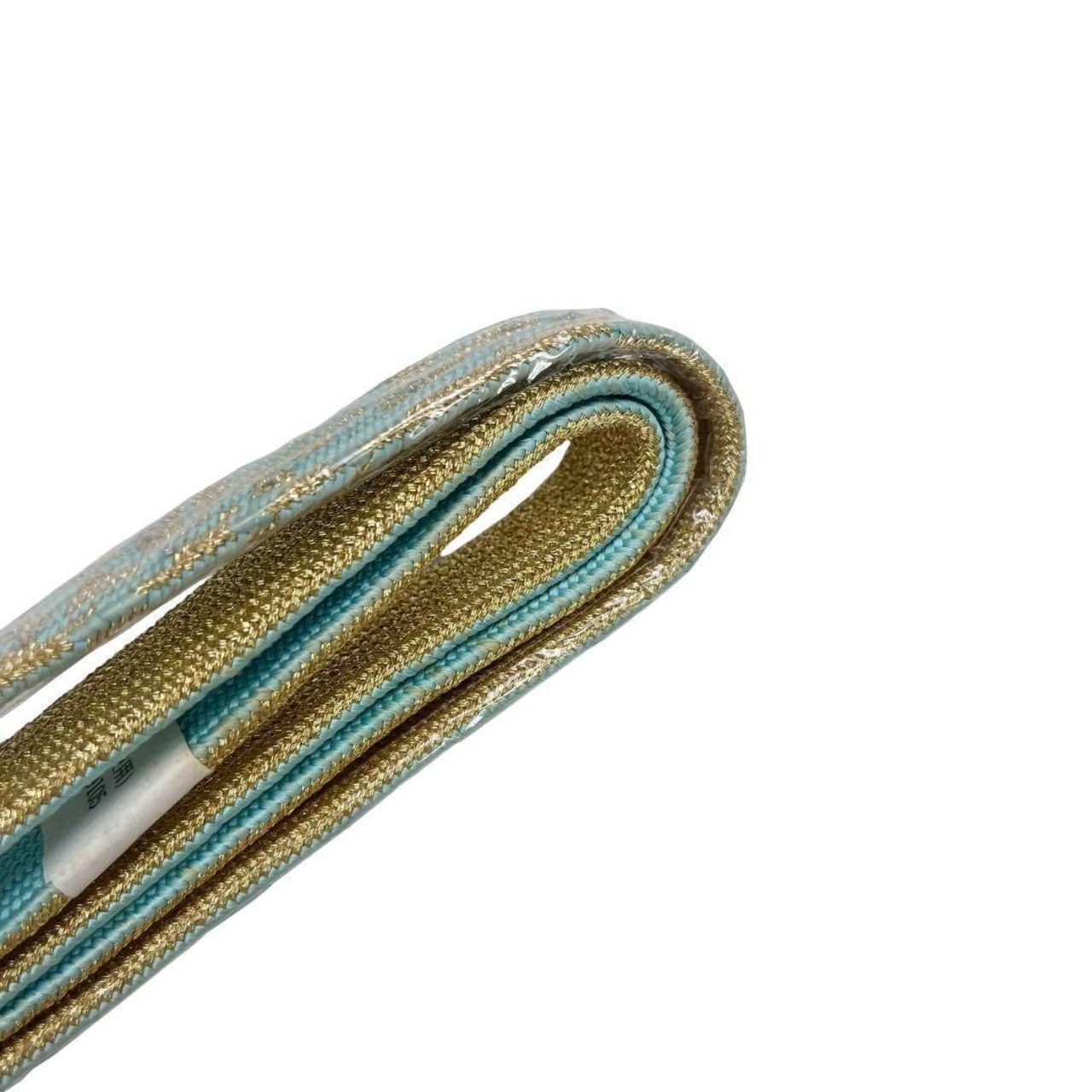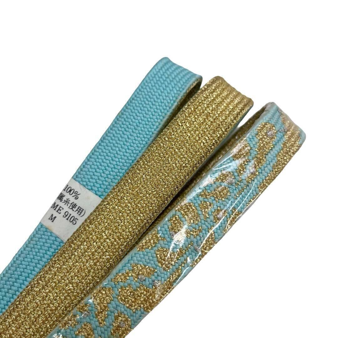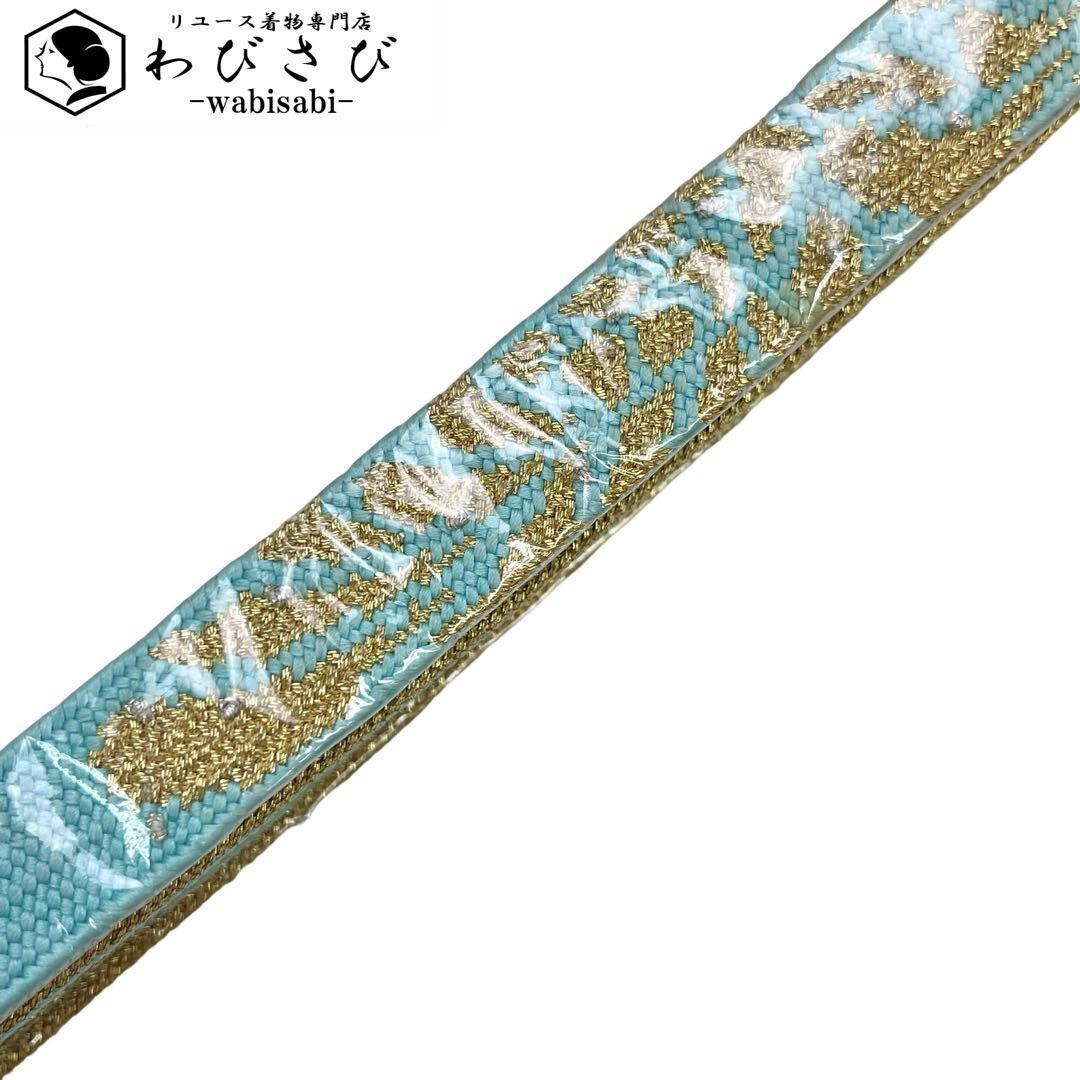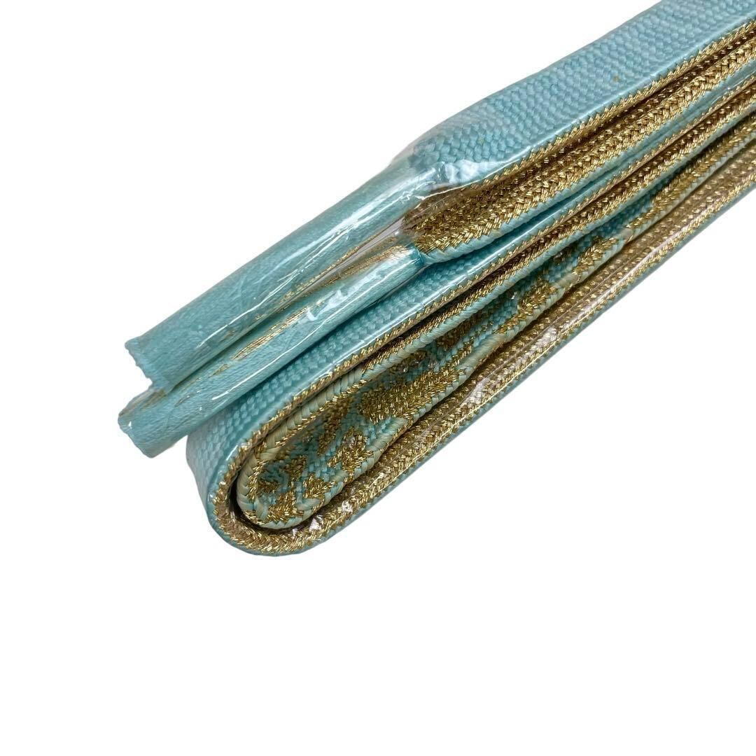 水色のお色味に煌びやかな高麗組の織模様がデザインされた素敵なお品でございます。