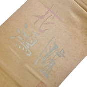 幹色のお色味に花鴻臚の抽象文字ががデザインされた雰囲気の良い素敵なお品でございます。
