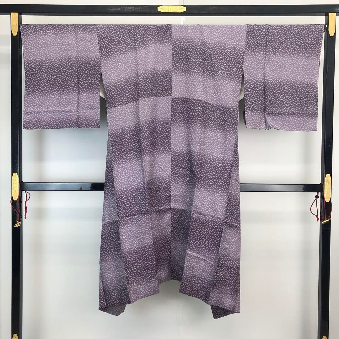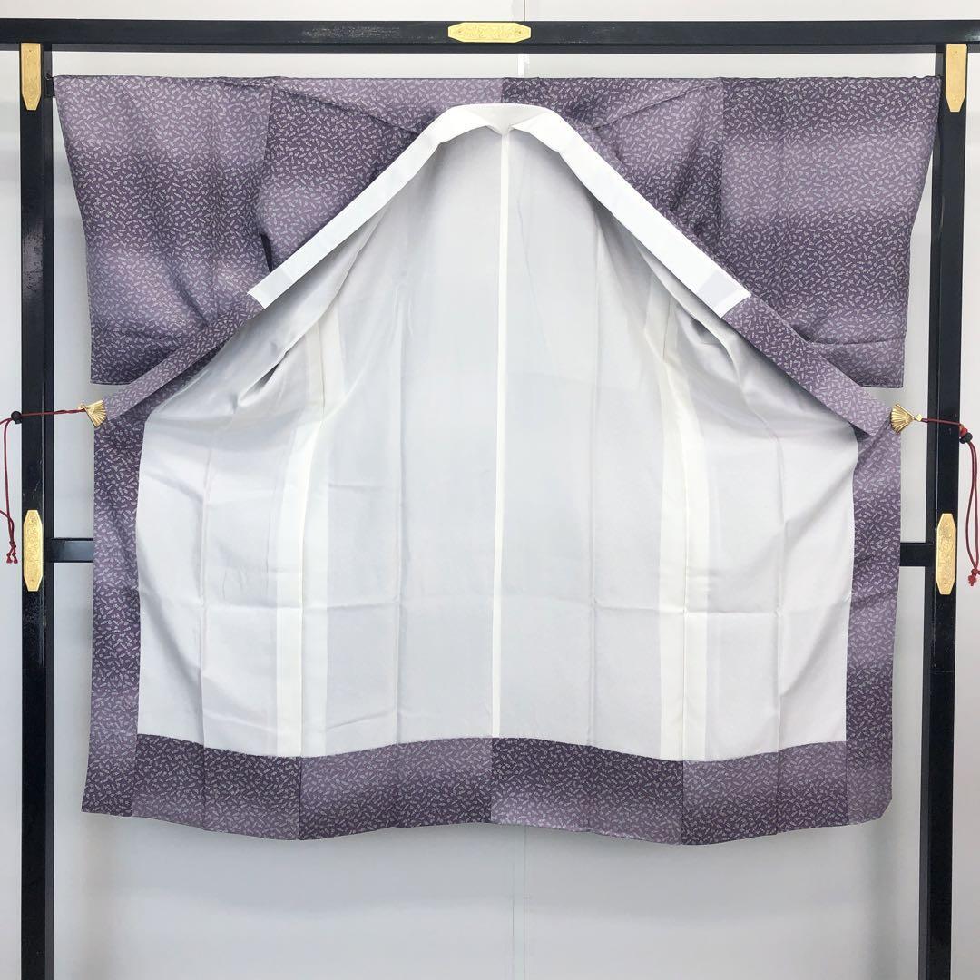 紫色ベースのお色味に紗綾形の地模様、傘に桜の花びら模様がデザインされた素敵なお品でございます。