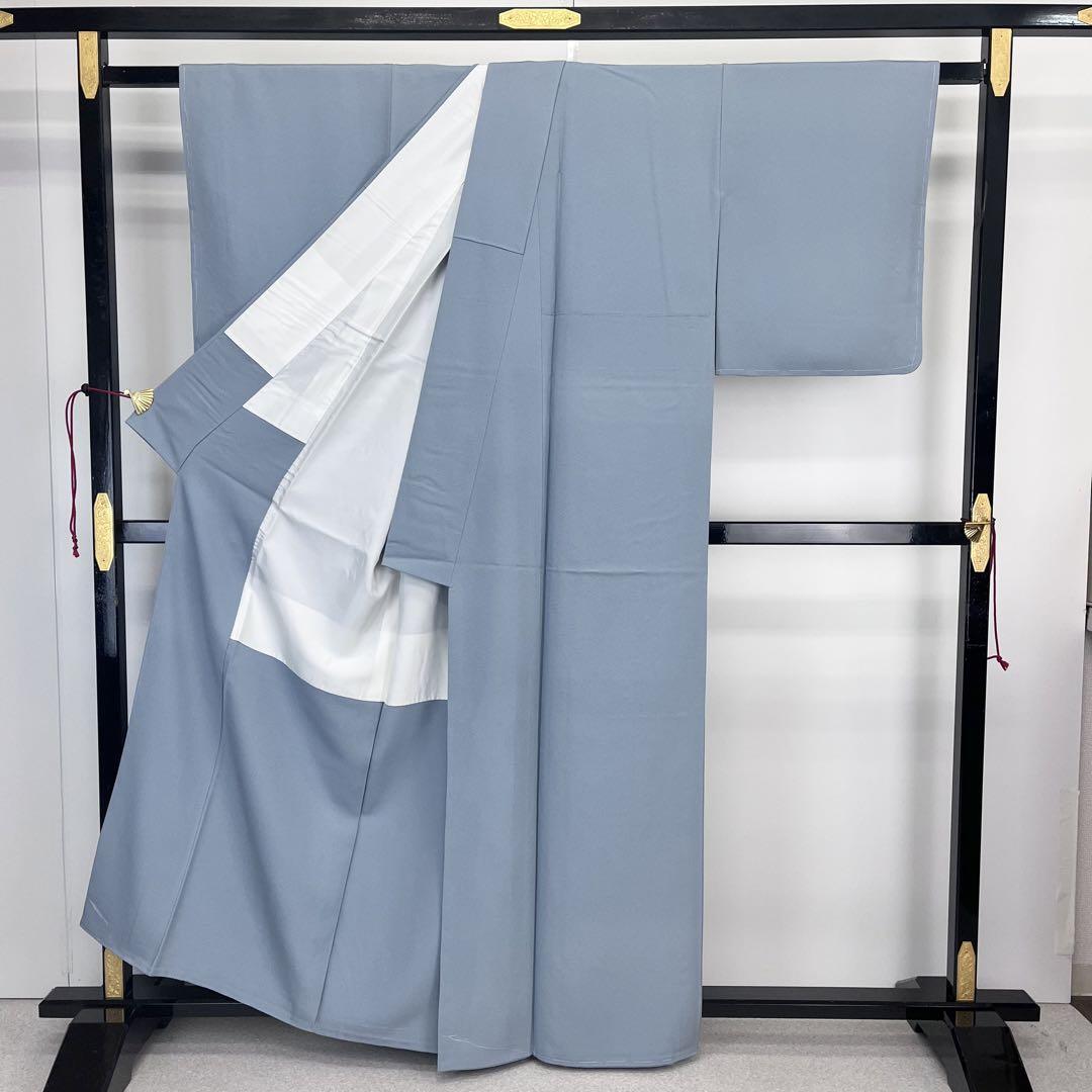色無地 京あかね 空鼠色 縮緬 しつけ糸 ふくよかサイズ K-4192