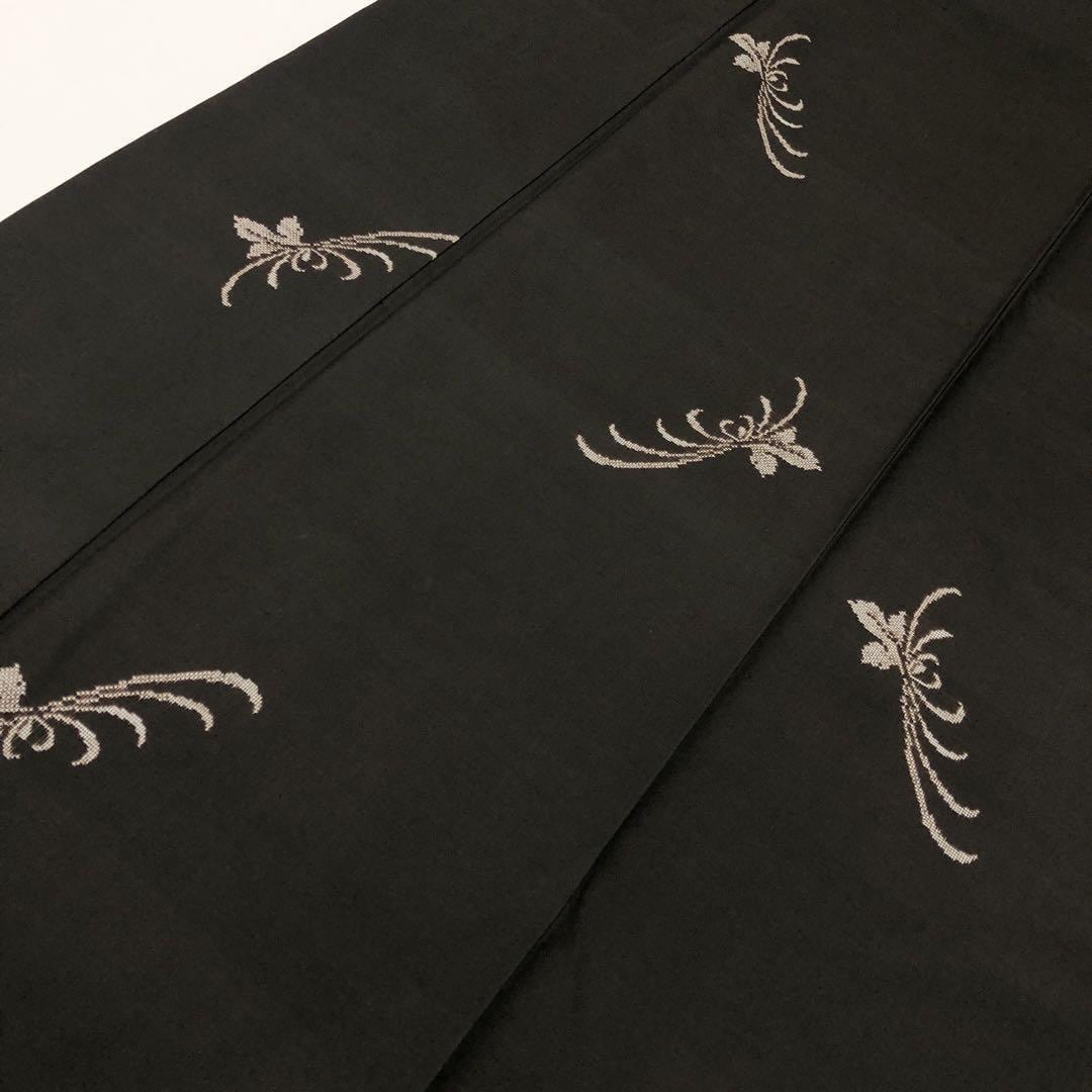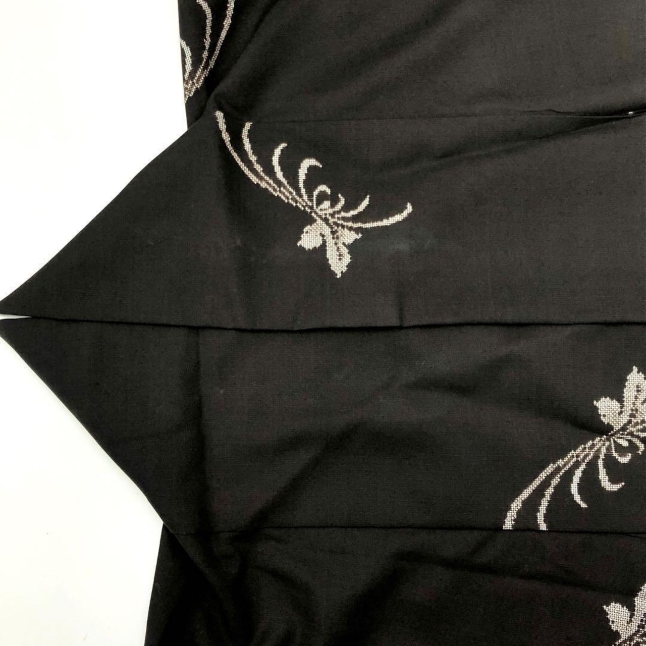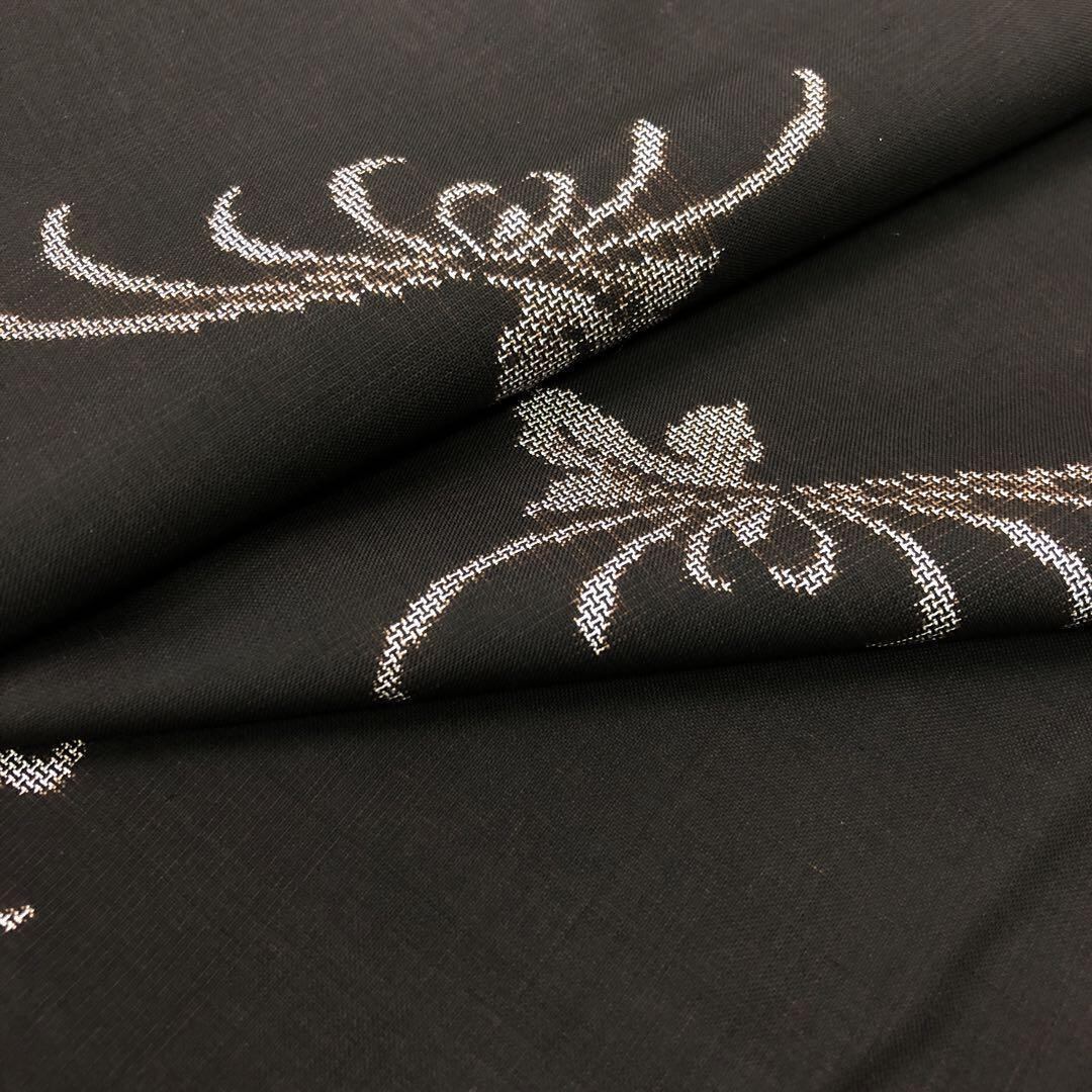 黒地の泥染の雰囲気の良いお色味に花模様がデザインされた素敵な柄裄のお品でございます。