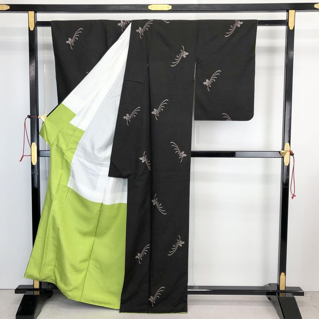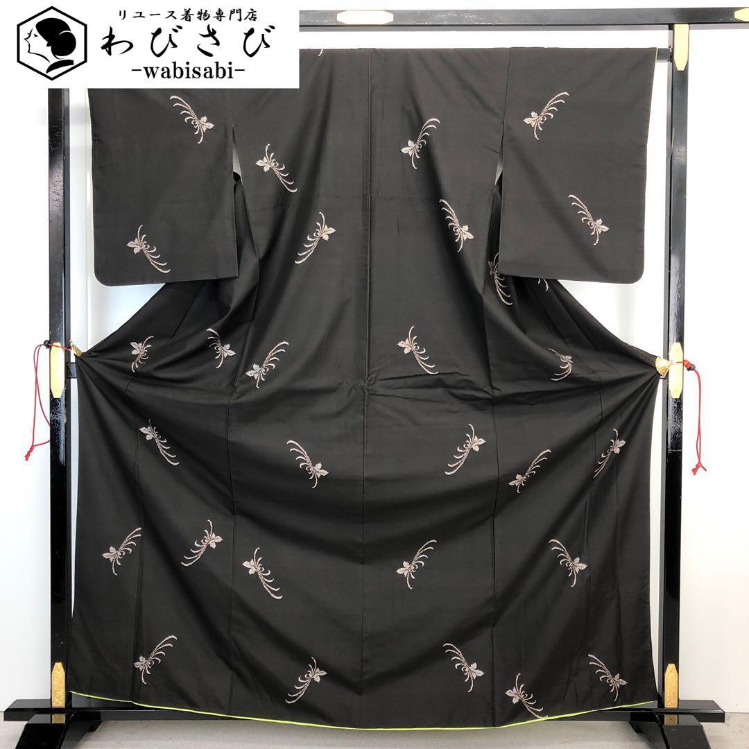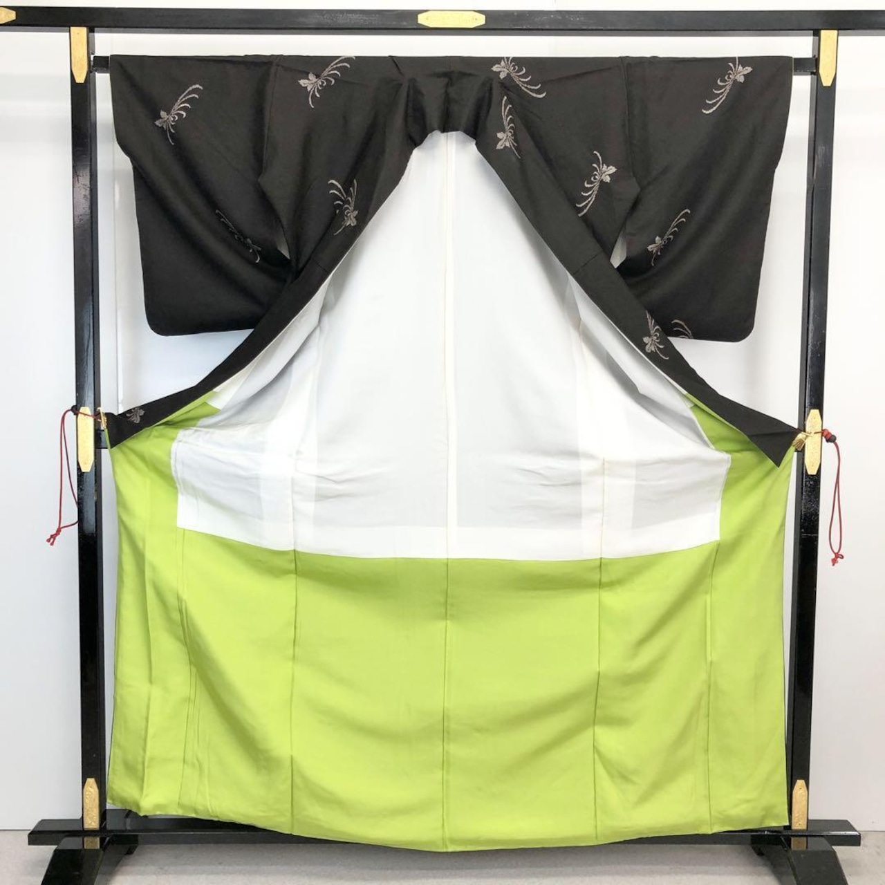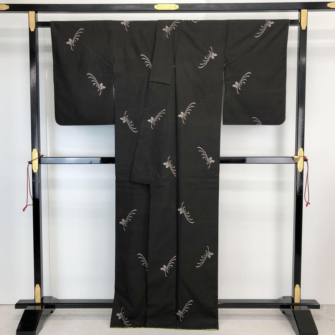 黒地の泥染の雰囲気の良いお色味に花模様がデザインされた素敵な柄裄のお品でございます。