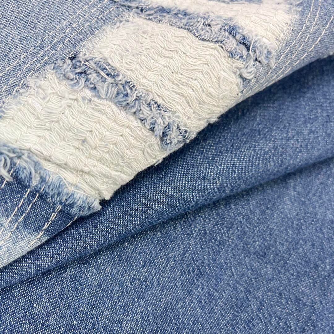 伯林青色ベースのお色味のデニムにダメージ加工がされた素敵なお品でございます。