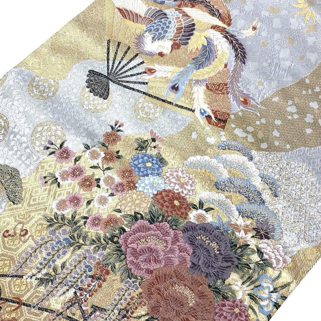 袋帯 本金 花車鳳凰文 鶴 美しい花模様 牡丹 菊 フォーマル O-4464 着物 きもの kimono 和服 和装 中古 リサイクル着物 【送料無料】
