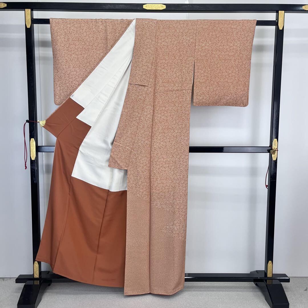 江戸小紋 花柄に唐草模様 柿色 K-4234 着物 きもの kimono 和服 和装 中古 リサイクル着物 【送料無料】