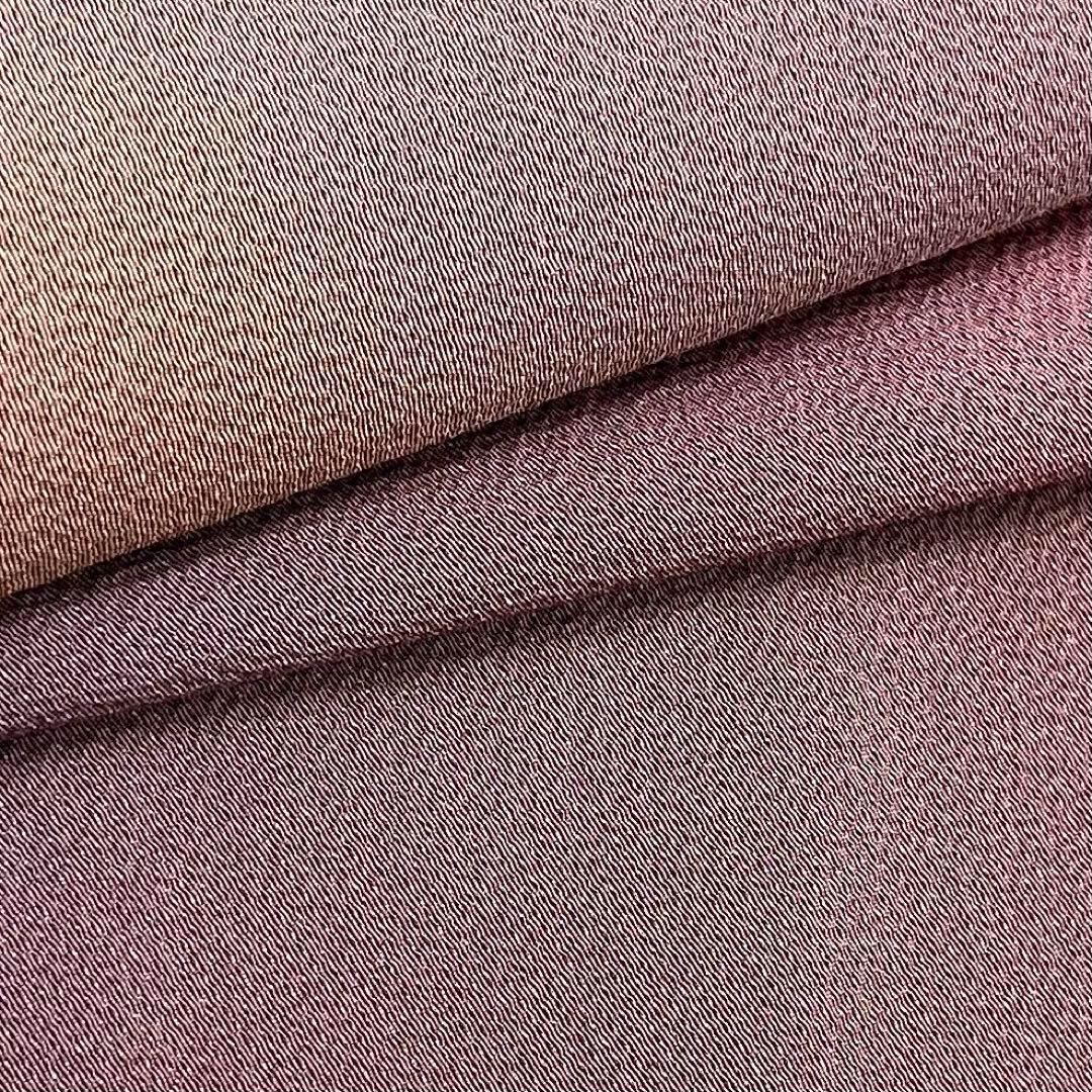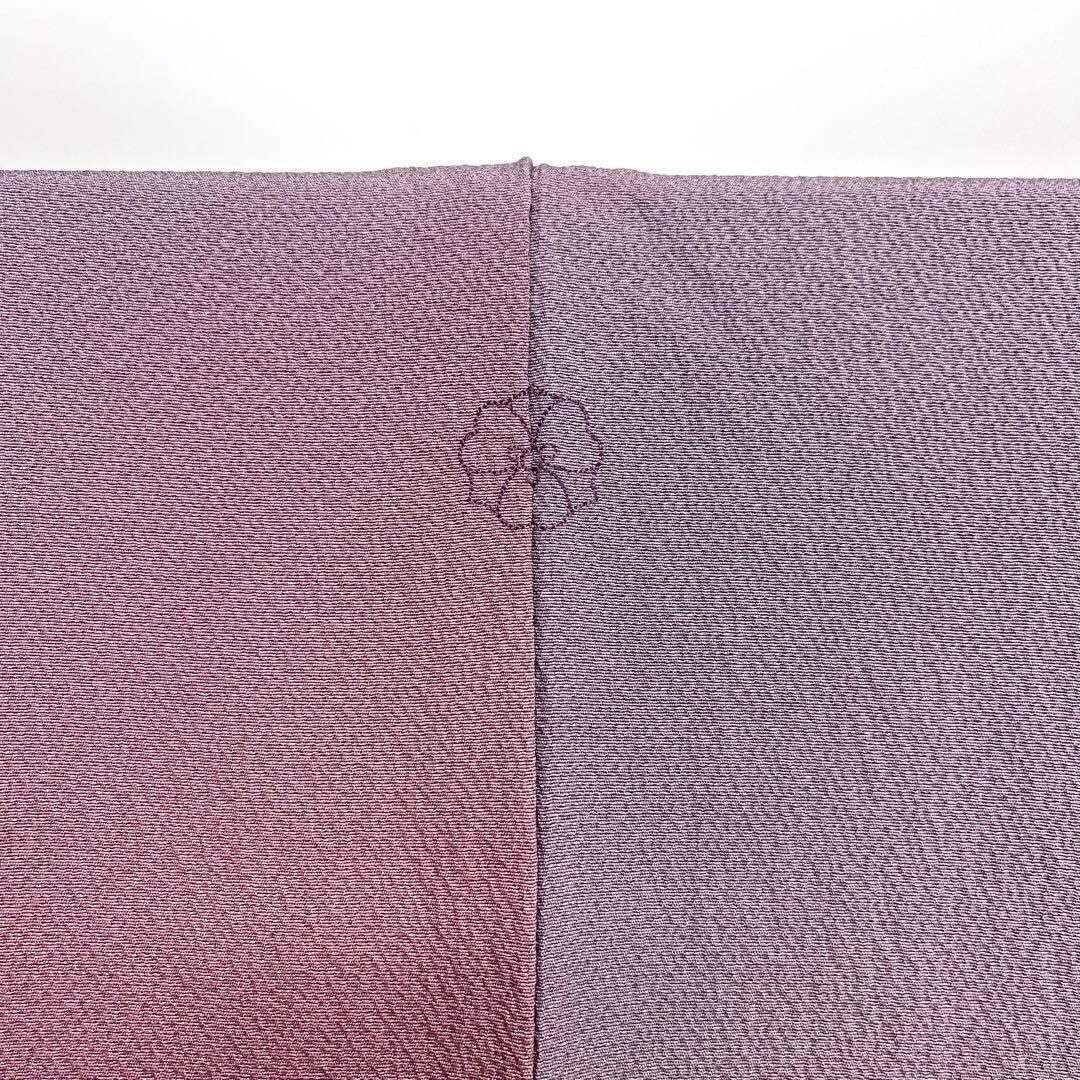 帯紅色ベースの縮緬に暈し染、品のある美しい色彩の無地柄デザインの素敵なお品でございます。