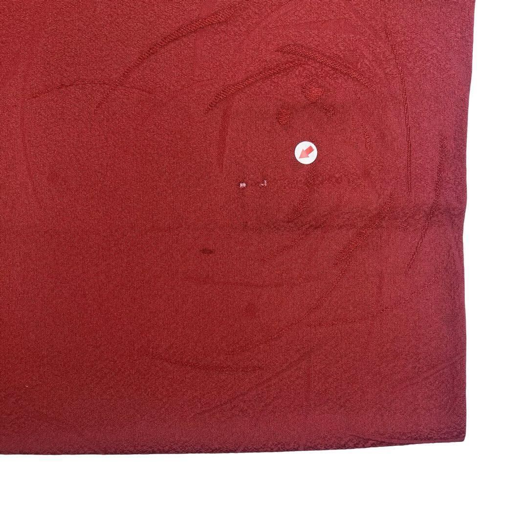 生臙脂色の深みのある赤味のお色、山々の風景に花模様がデザインされた素敵なお品でございます。