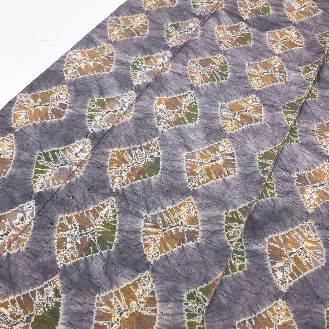 藤鼠色ベースの雰囲気の良い色彩の絞り柄でデザインされた素敵な柄裄のお品でございます。