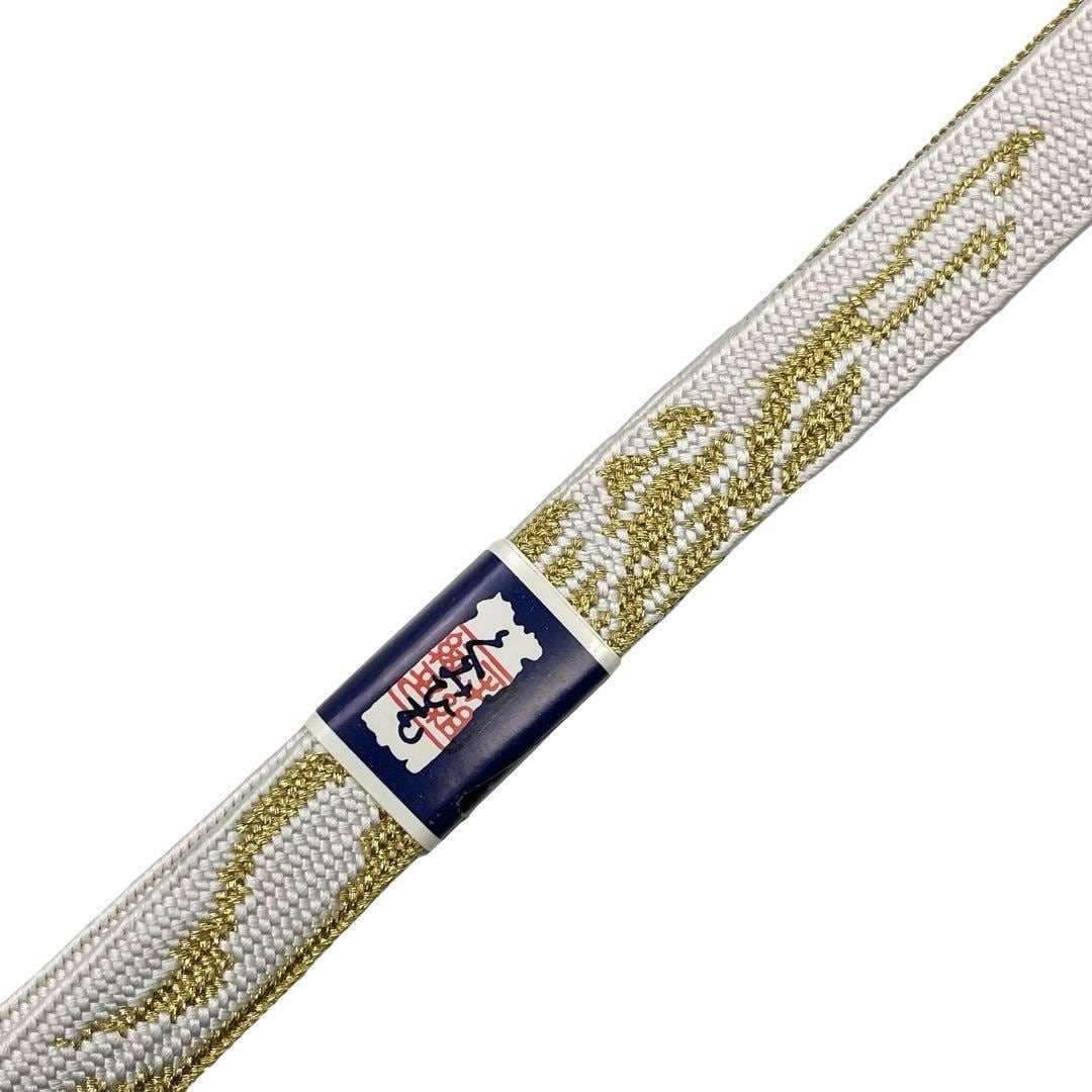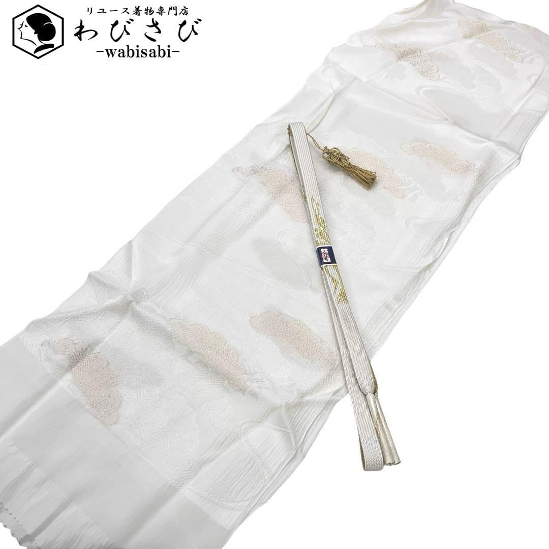 乳白色のお色味に金糸などで松葉がデザインされた綸子の帯揚げ、高麗組紐の帯締めの素敵なお品でございます。