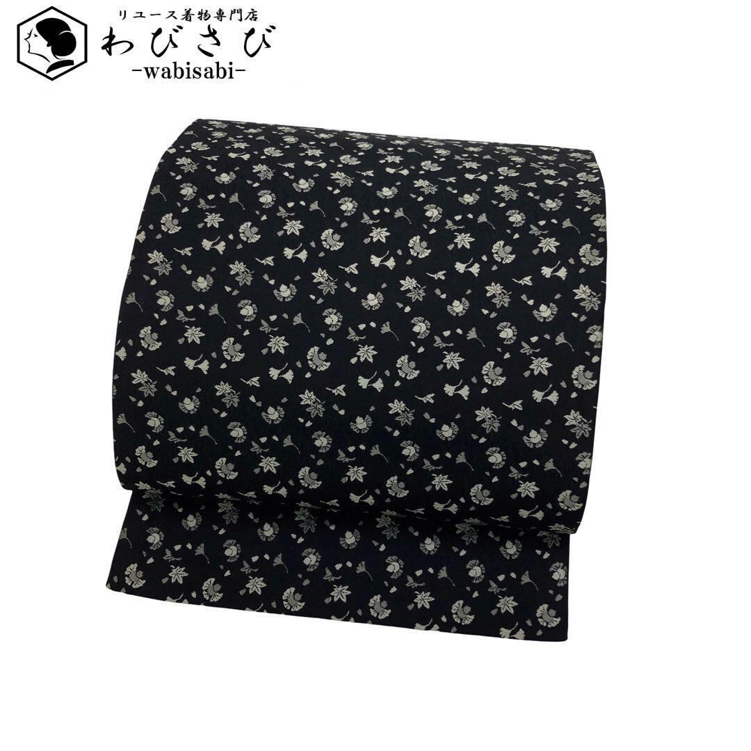 袋帯 ふくら雀 紅葉 銀杏の葉模様 黒色 O-4477 着物 きもの kimono 和服 和装 中古 リサイクル着物 【送料無料】