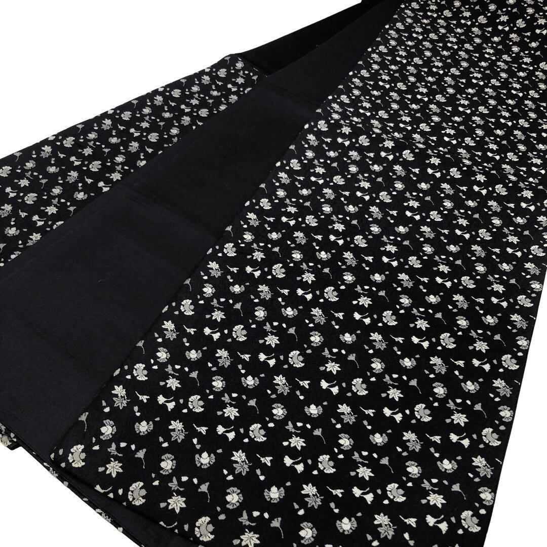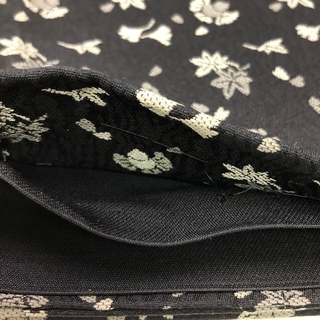 黒色にふくら雀、紅葉、銀杏の葉模様がデザインされた素敵な柄裄のお品でございます。