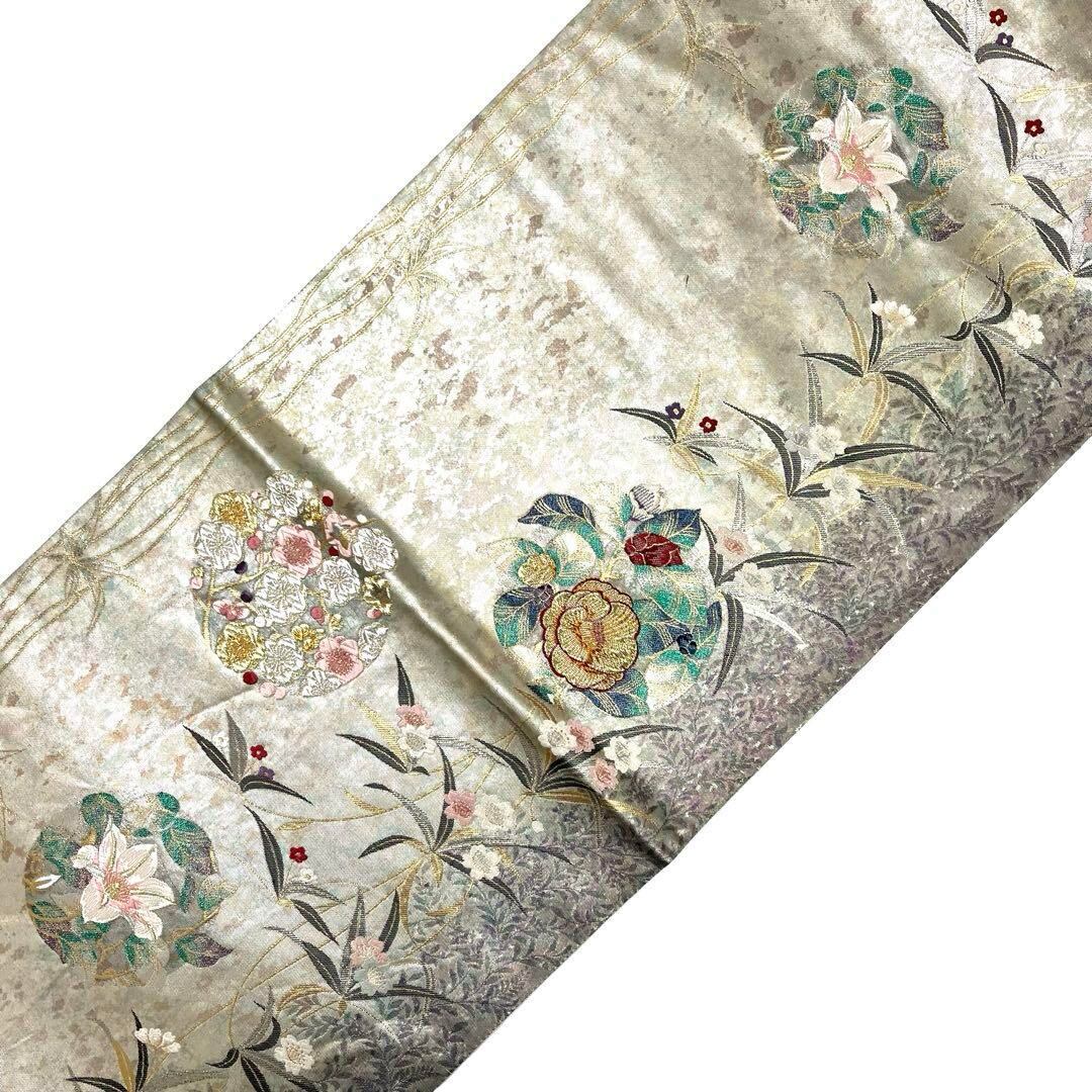 胡粉色ベースのお色に金銀糸が使われた煌びやかな美しい花模様がデザインされた素敵な柄裄のお品でございます。