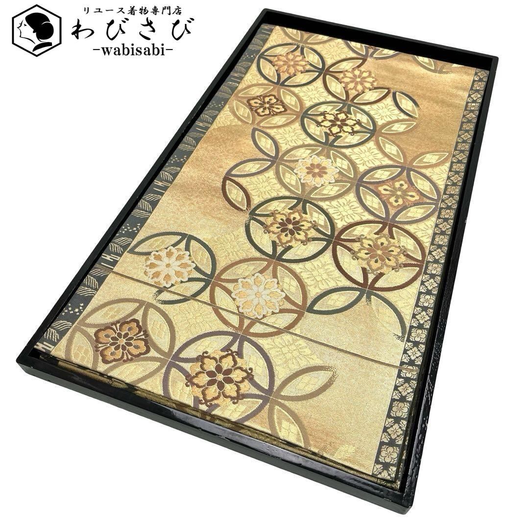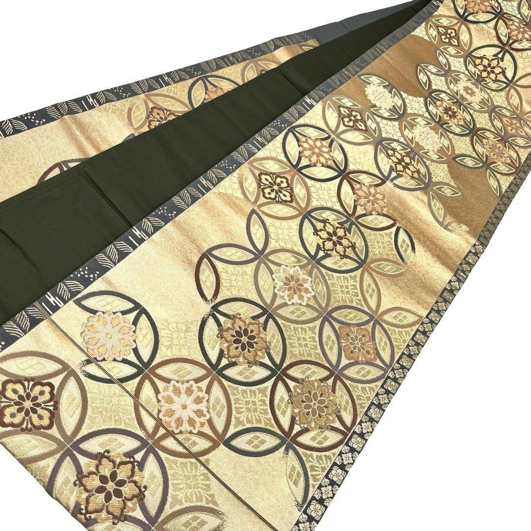 袋帯 煌びやかな花七宝 金糸 金色 フォーマル O-4482 着物 きもの kimono 和服 和装 中古 リサイクル着物 【送料無料】
