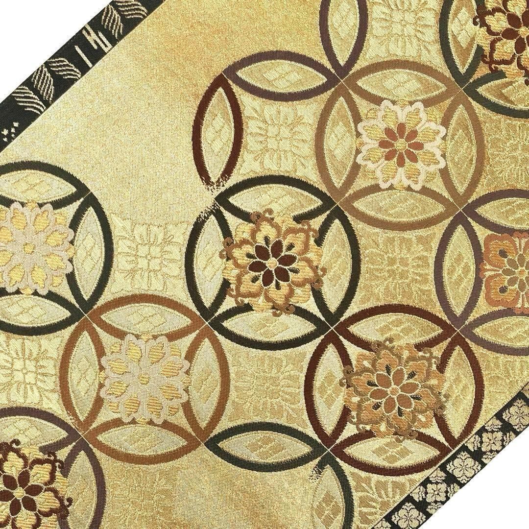 金色ベースの煌びやかなお色味に花七宝の柄裄がデザインされます素敵なお品でございます。