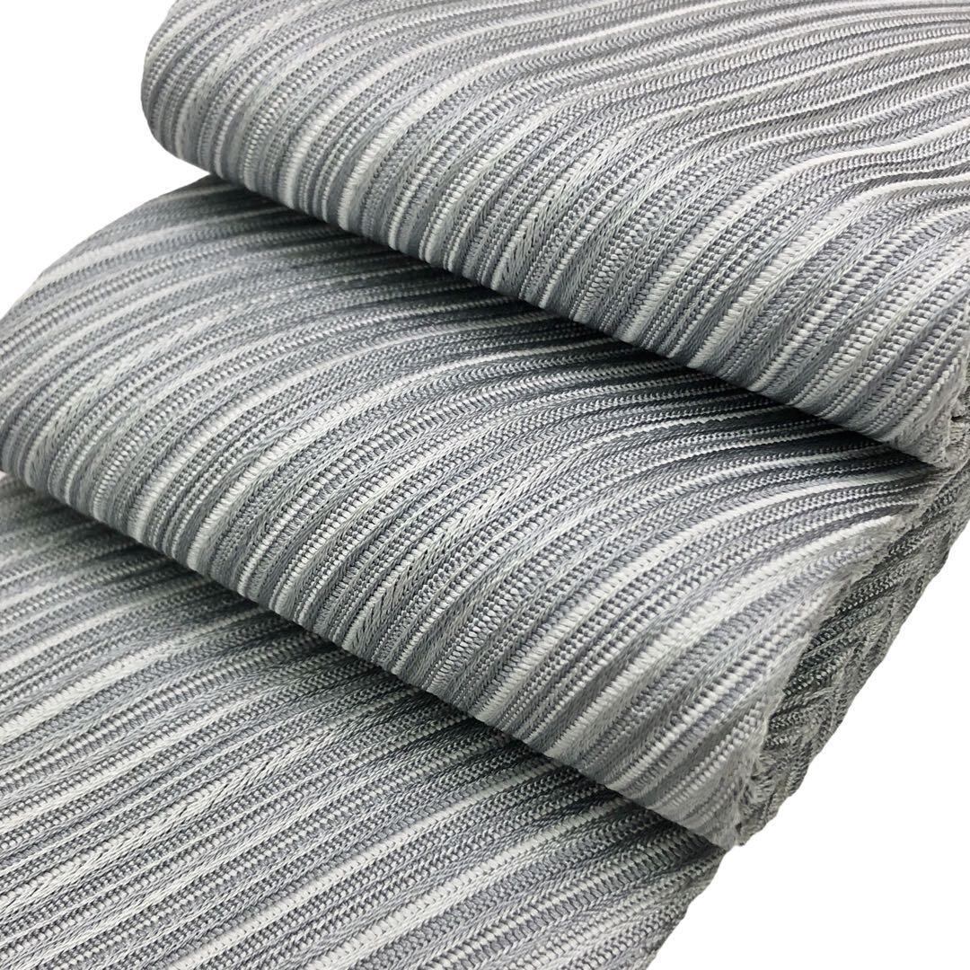 空色鼠色の優しい水色系のお色味に斜め縞模様の織柄がデザインされた素敵な柄裄のお品でございます。
