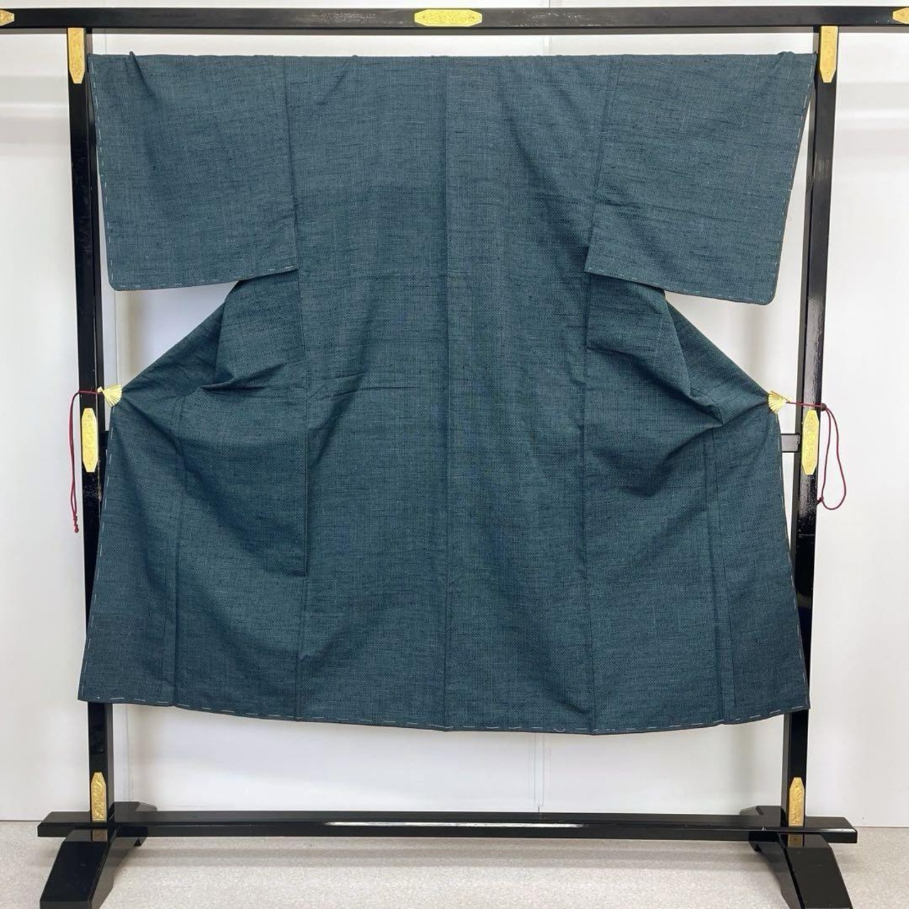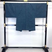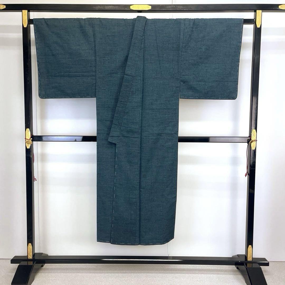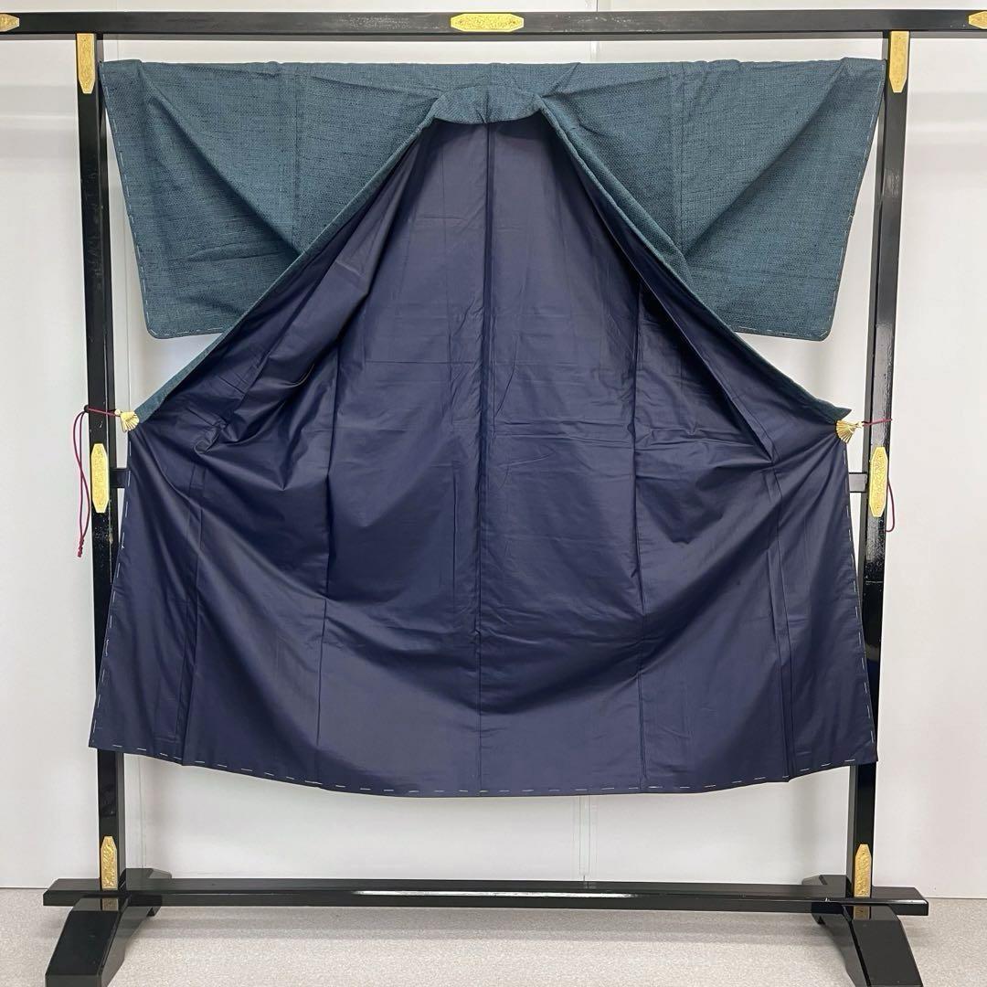 藍鉄色の雰囲気の良いお色味、柔らかい紬の素敵なお品でございます。