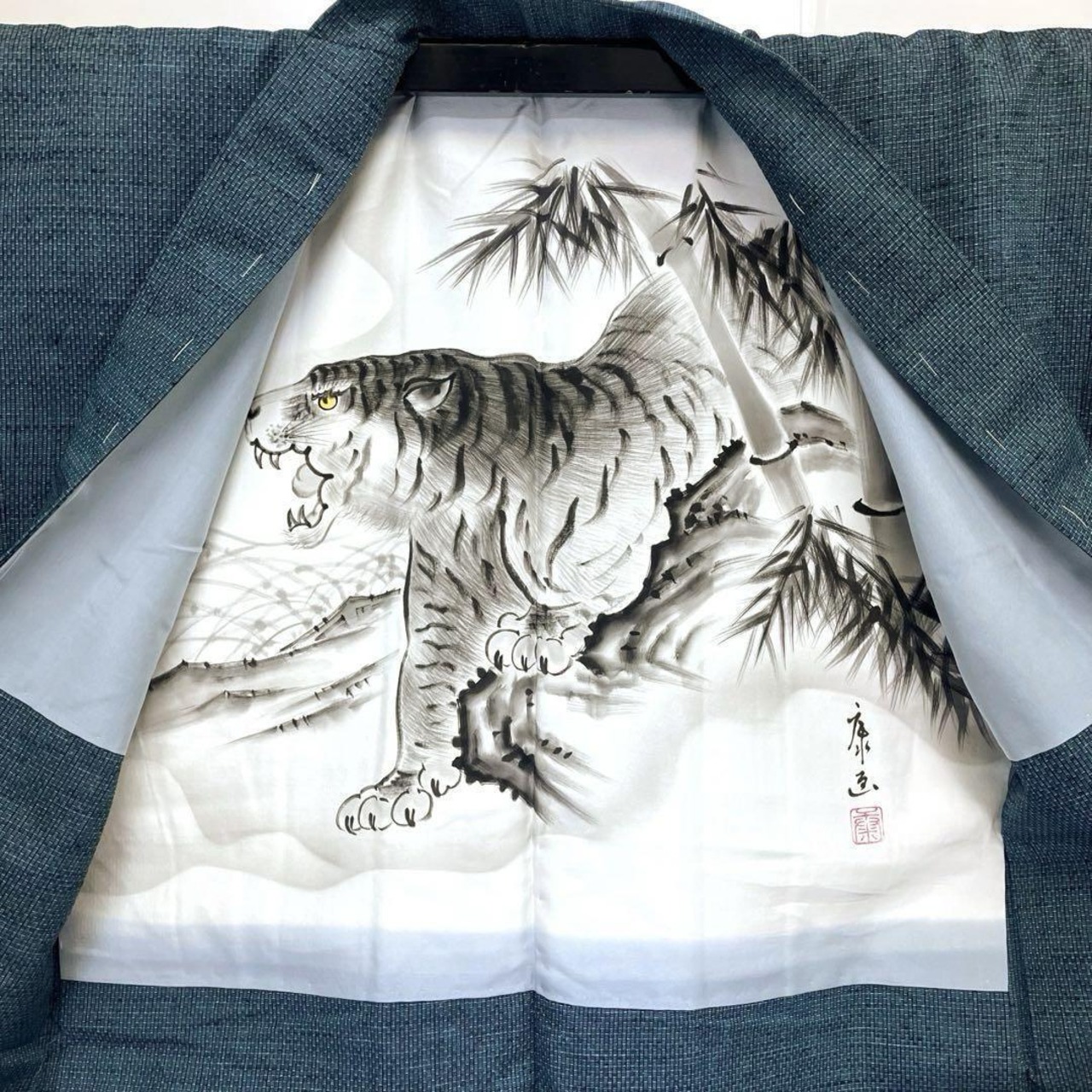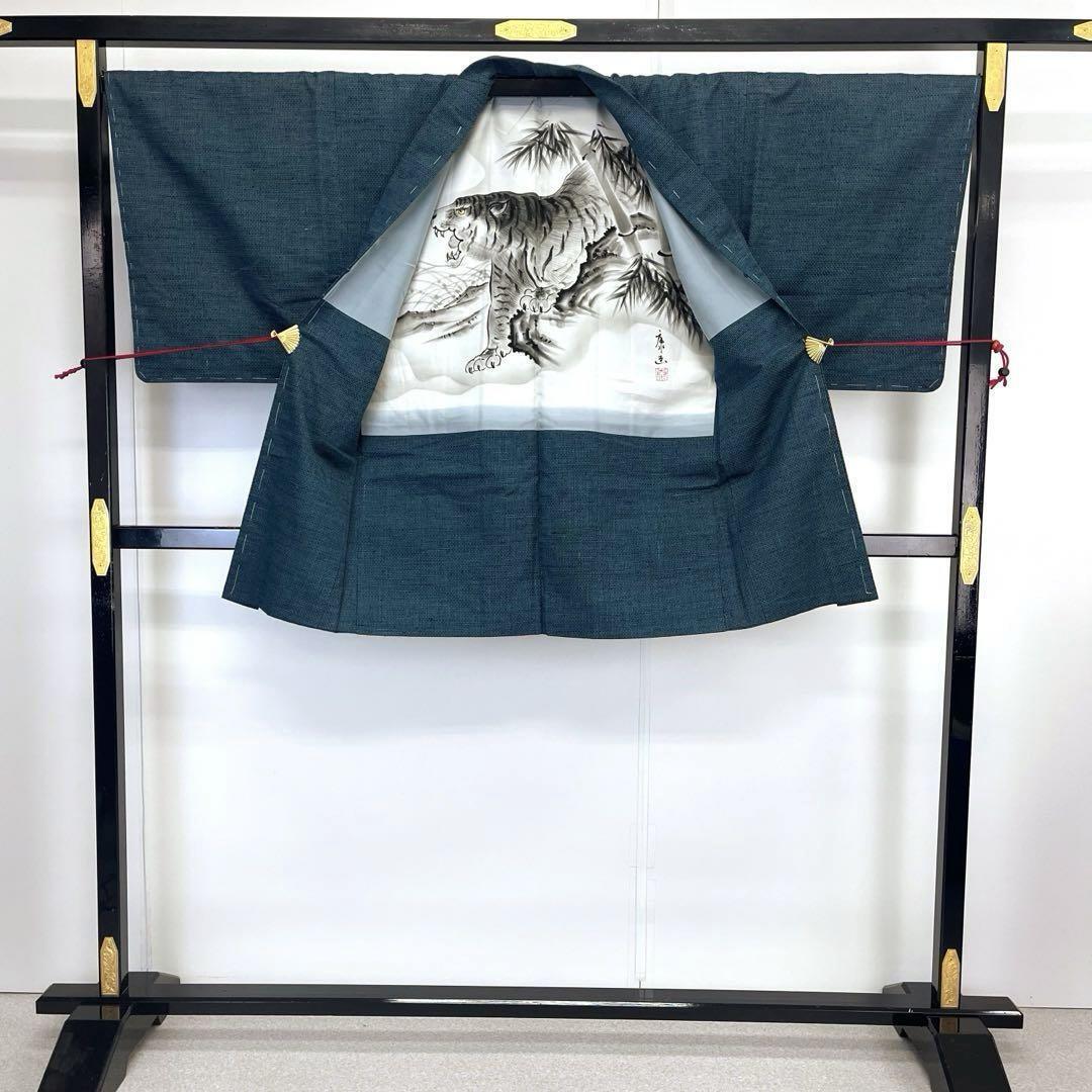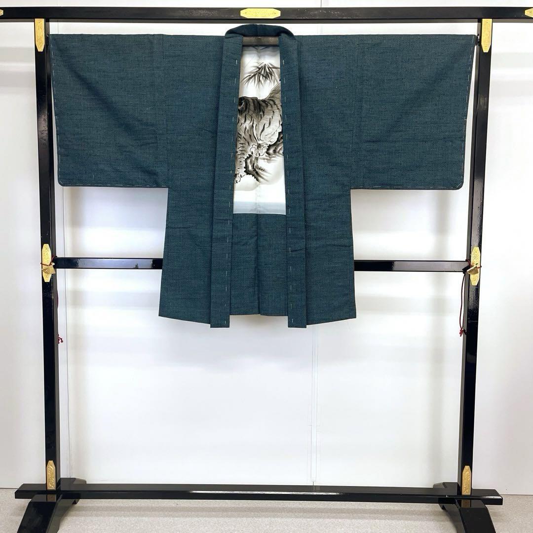 藍鉄色の雰囲気の良いお色味、柔らかい紬の素敵なお品でございます。