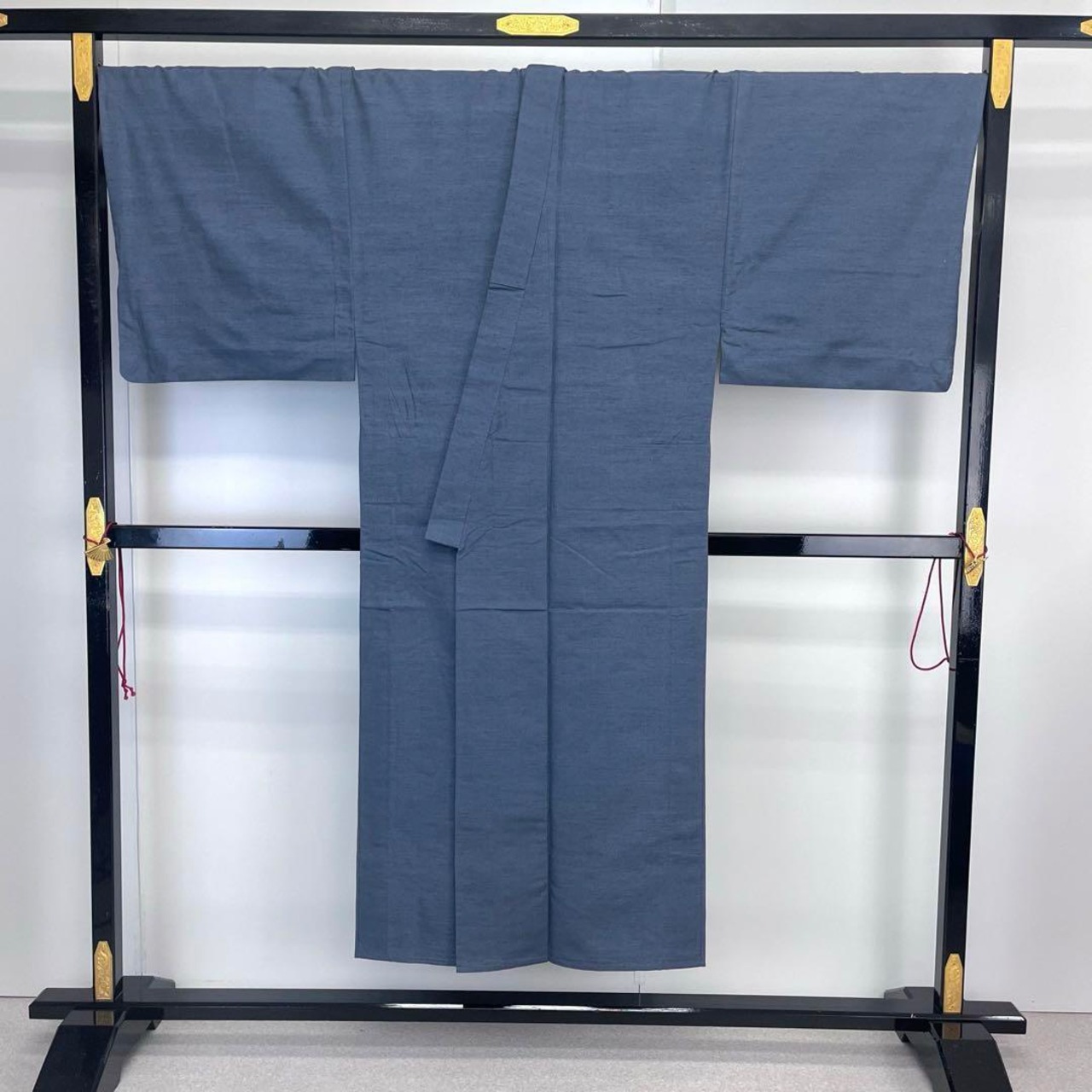 鉛色のお色味の紬、無地でスッキリとした雰囲気の良い素敵なお品でございます。